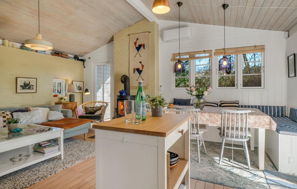Velkommen til Norddjurs smukke natur og til dette hyggelige hus, som falder perfekt ind i idyllen. Her bor I dejligt kystnært på en grønd grund i et varmt og personligt sommerhus, som emmer af fred og ro. Find sammen i den stemningsfulde stue og læn jer godt tilbage efter en lang dag på farten. Fyld aftenerne med bøger, brætspil og gode snakke, mens ilden knitrer i brændeovnen.
