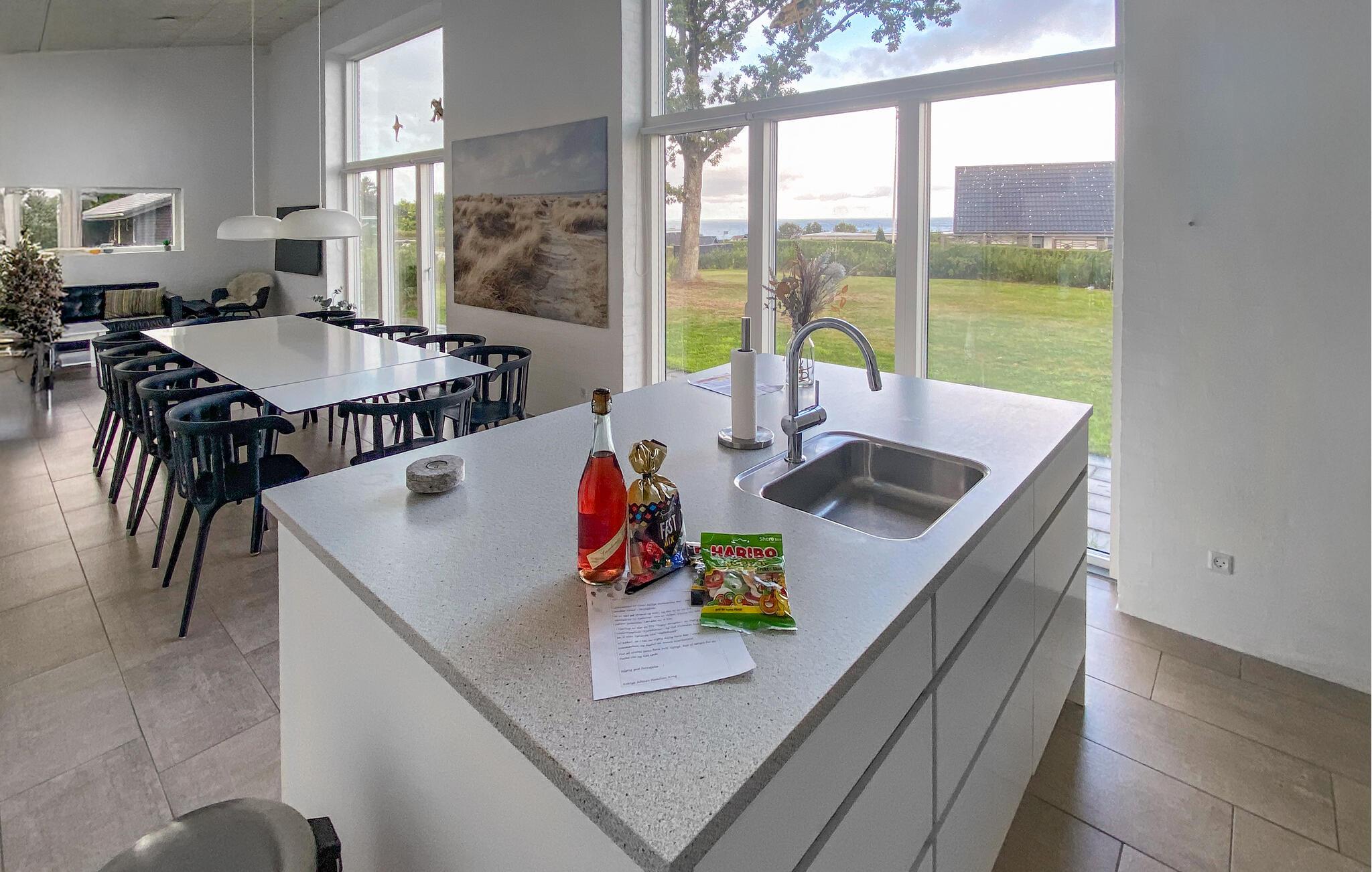 Udefra er jeres feriehus et sandt blikfang. Men det har også meget at byde på indenfor. Træd ind og lad jer betage af den lyse opholdsstue. Læn jer tilbage i den store sofagruppe, mens børnene spiller bordtennis i aktivitetsrummet. Tilbered jeres måltider i det moderne køkken med kogeø, og sæt jer ved det lange spisebord, der tilbyder masser af plads til alle. Glæd jer til badesjov og velvære med sauna, spabad og indendørs pool.