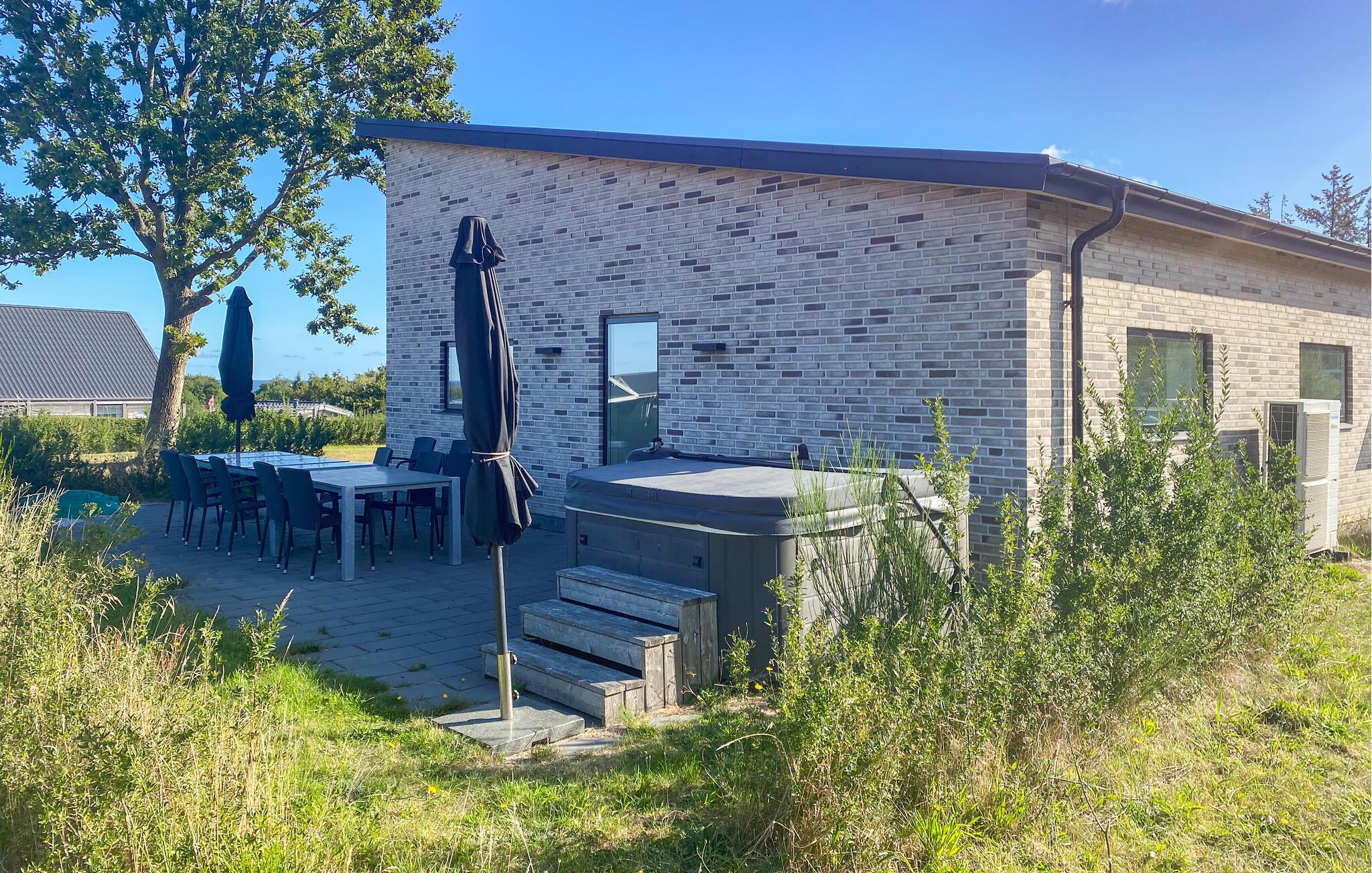Nyd ferien i dette rummelige og moderne feriehus med spa og havudsigt.