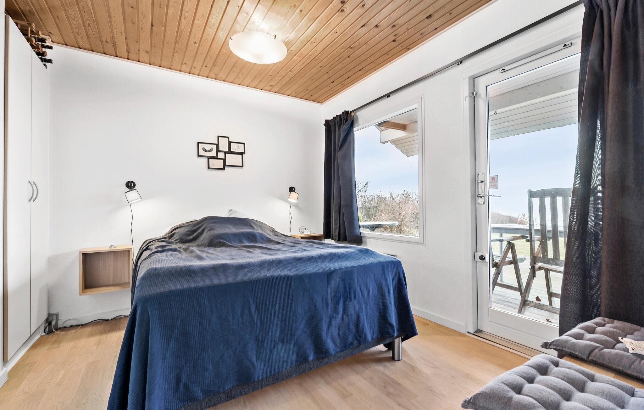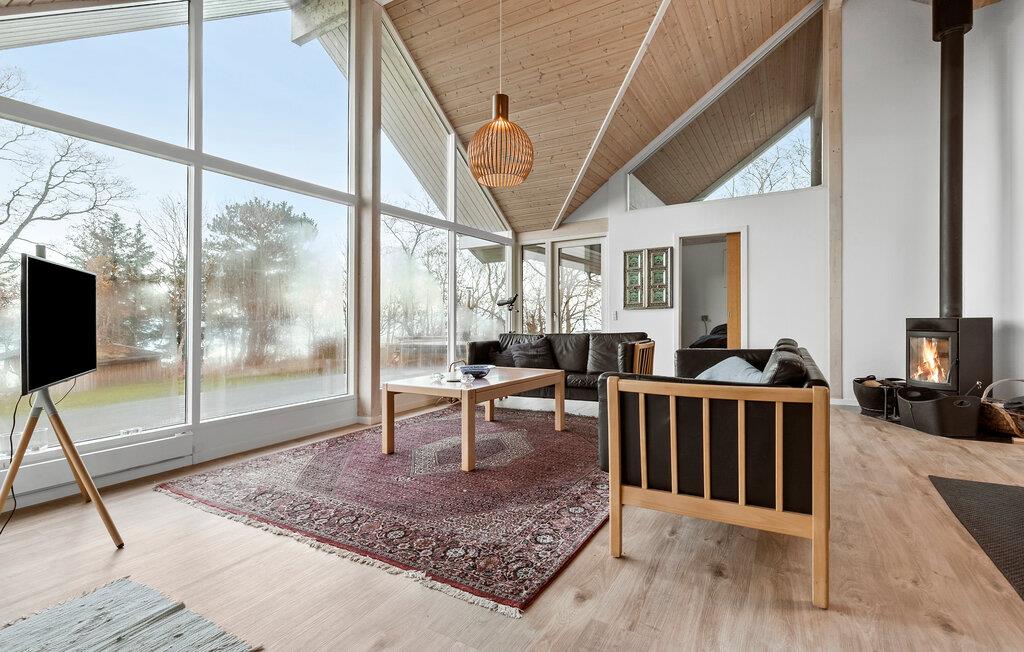 Velkommen til dette veludstyrede sommerhus med førsteklasses beliggenhed. Føl jer godt tilpas på sofaen i jeres smagfuldt møblerede stue og nyd havudsigten uden at skulle give afkald på privatlivets fred. Tilbring stilfulde aftener foran den knitrende pejs og fejr jeres måltider ved det behageligt oplyste spisebord.