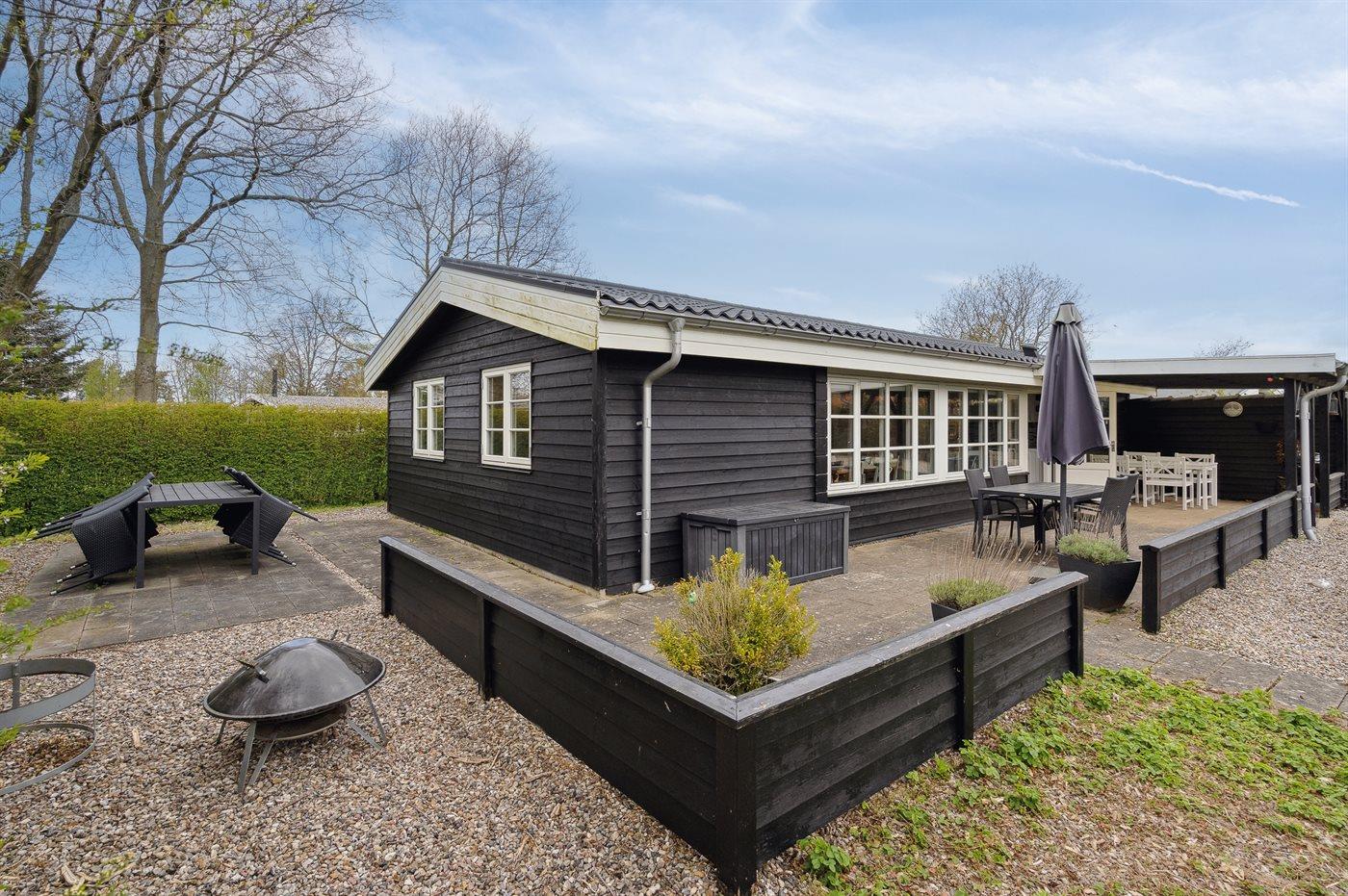 Ferieboligen er beliggende på en 800 m² stor havegrund. Der er 300 m til havet. Nærmeste forretning er beliggende i en afstand af 1000 m. Til ferieboligen hører 20 m² terrasseareal. Desuden er der 10 m² overdækket terrasse. Parkering ved ferieboligen.