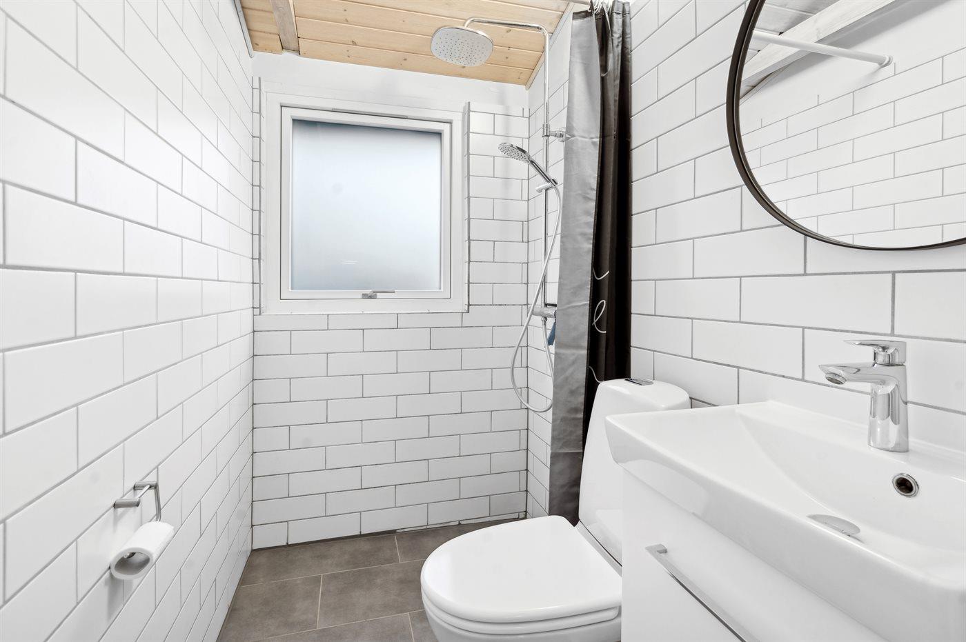 Der er 1 badeværelse med bruseniche og 1 toilet.. Der er el-gulvvarme på badeværelset.