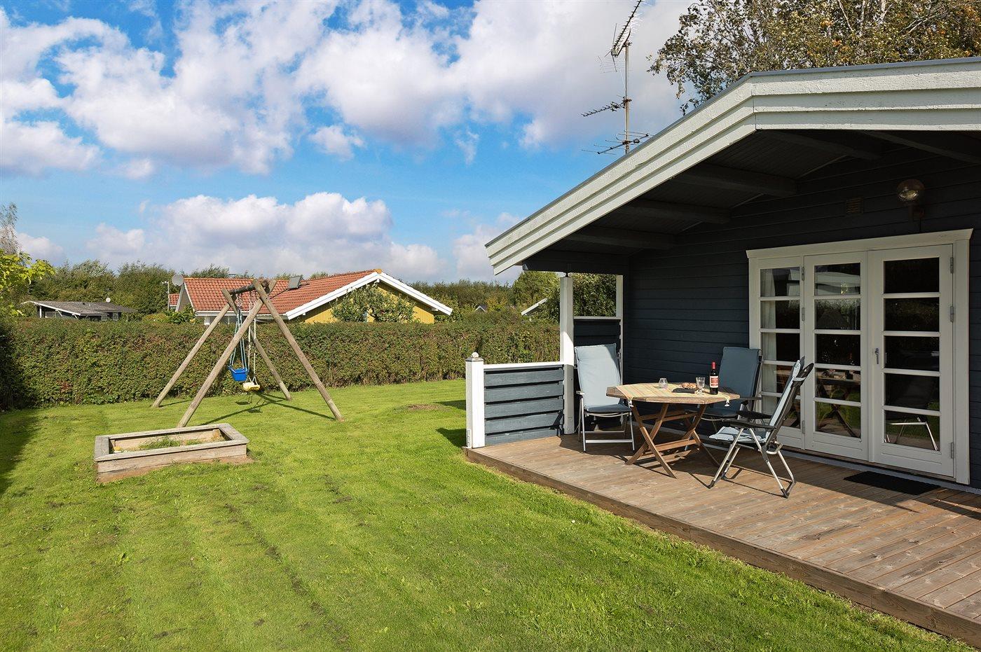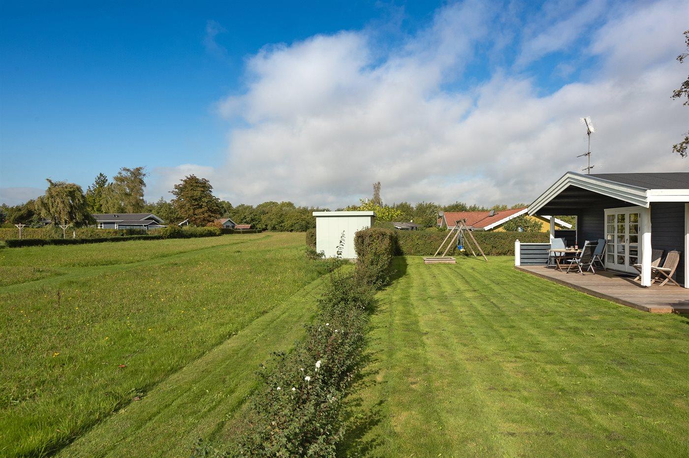 Ferieboligen er beliggende på en 800 m² stor havegrund. Der er 600 m til havet. Nærmeste forretning er beliggende i en afstand af 1600 m. Til ferieboligen hører 30 m² terrasseareal. Desuden er der 8 m² overdækket terrasse. Der er redskabsrum. Gynge. Sandkasse. Parkering ved ferieboligen.