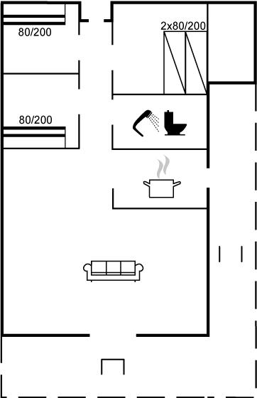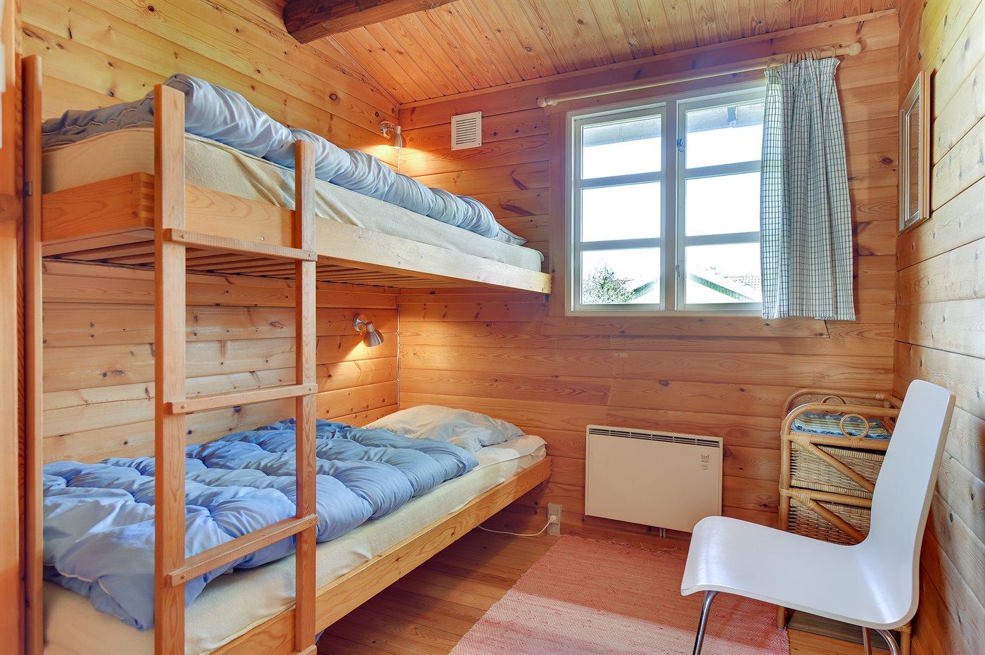 Der er i alt 3 soveværelser. Sovepladserne fordeler sig på: 2 sovepladser i dobbeltseng. 4 sovepladser i køjesenge. Derudover er der 1 stk. barneseng.