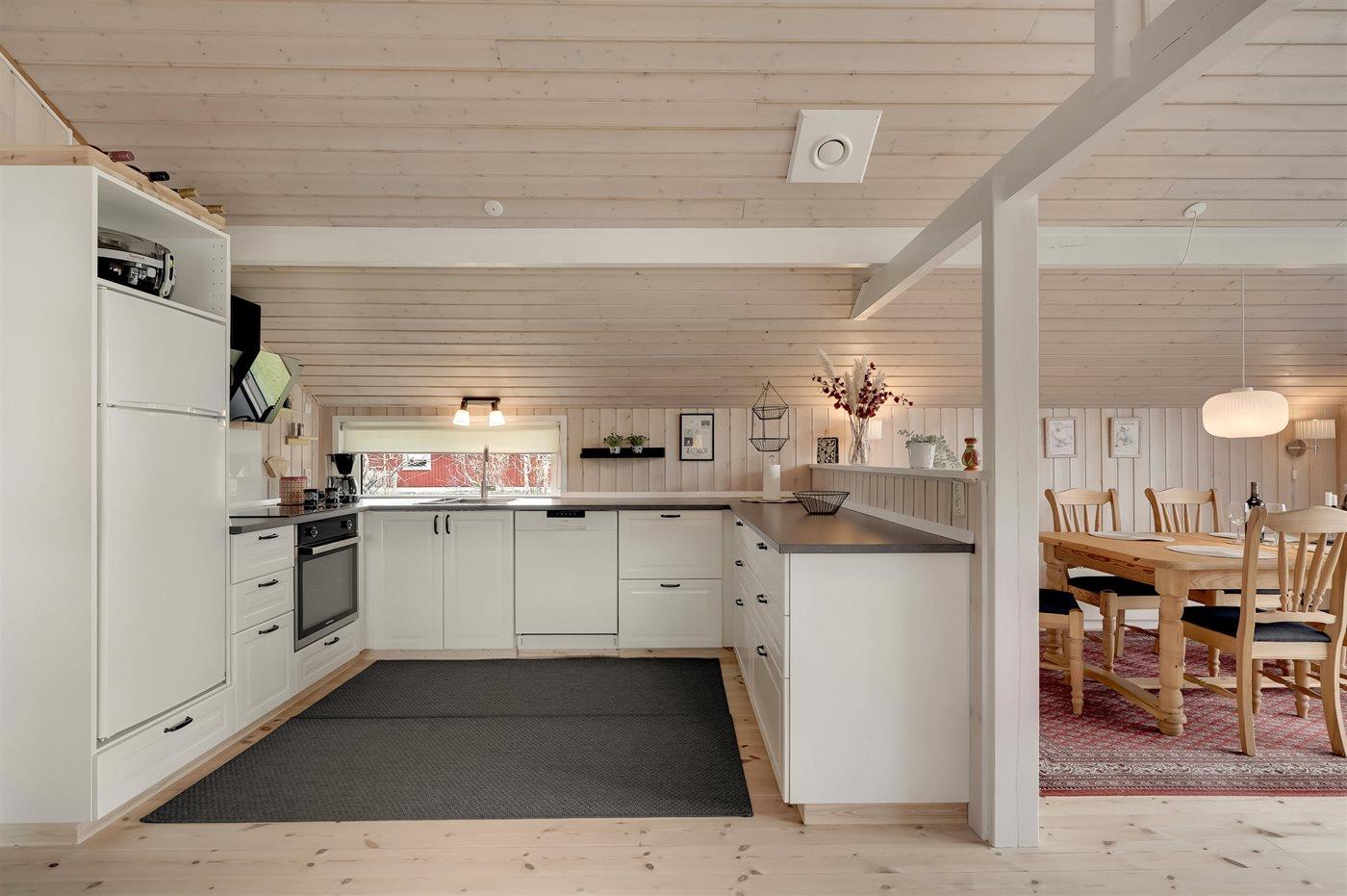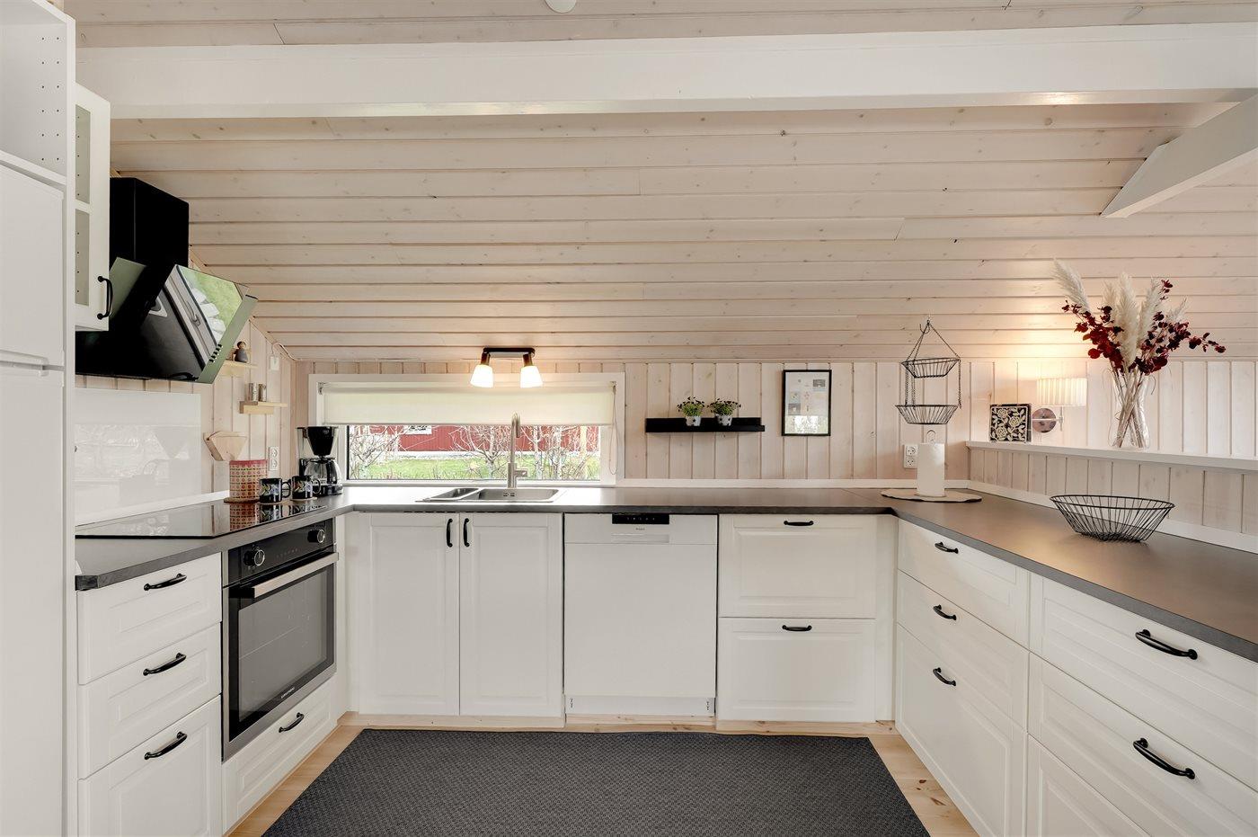 Køkkenet er udskiftet i 2023 og der findes nu IKEA- elementer samt 1 køle-/ fryseskab, 4 keramiske kogeplader, pyrolysevarmluftsovn, opvaskemaskine og mikrobølgeovn.