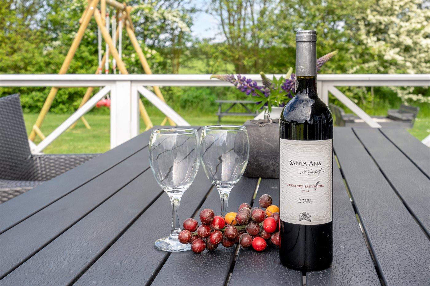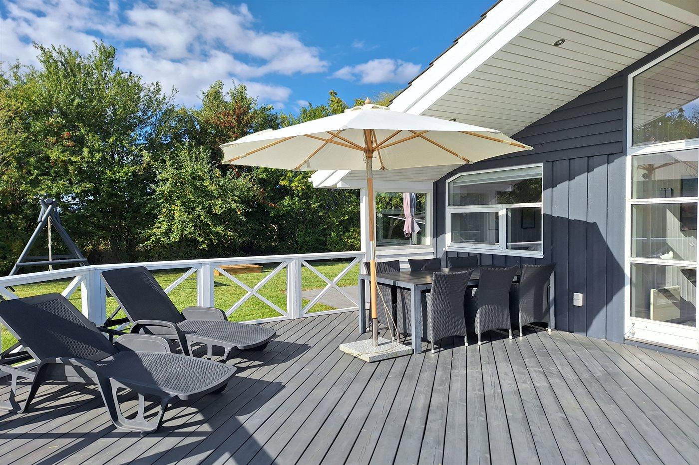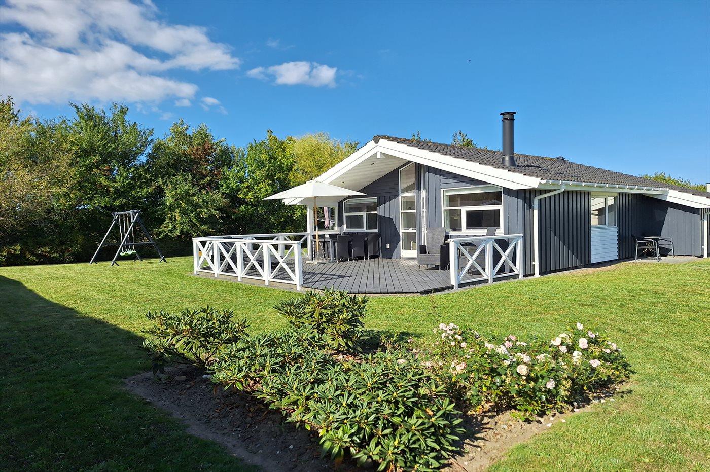 Ferieboligen er beliggende på en 1099 m² stor naturgrund. Der er 700 m til havet. Nærmeste forretning er beliggende i en afstand af 400 m. Til ferieboligen hører 62 m² terrasseareal. Desuden er der 6 m² overdækket terrasse. Gynge. Sandkasse. Grill til rådighed. Der er installeret stik til opladning af elbil. Parkering ved ferieboligen.
