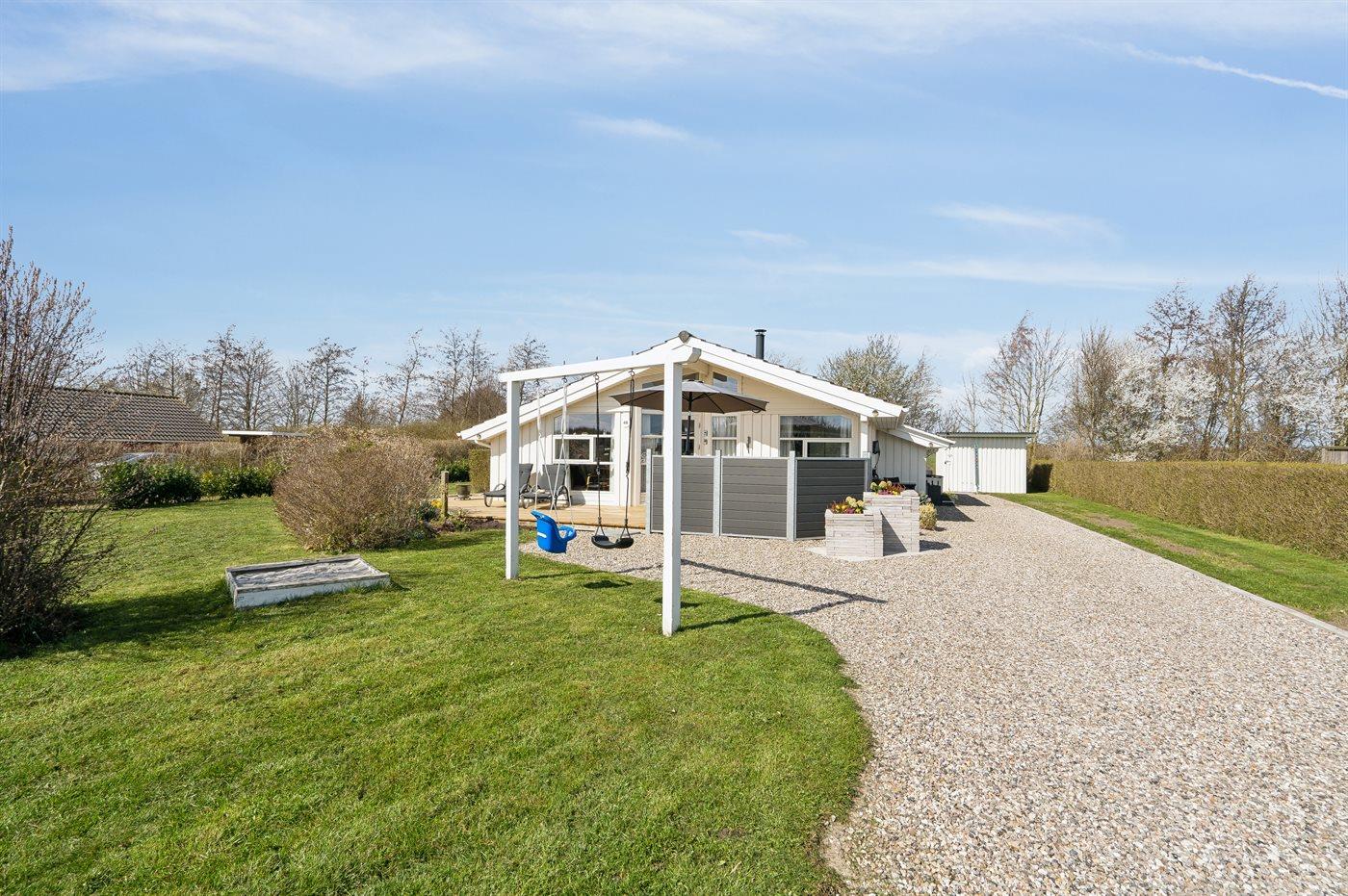 Et rummeligt sommerhus beliggende på en dejlig grund med græsplæne og gode mulighed for udendørs leg.