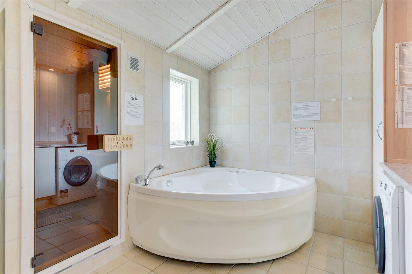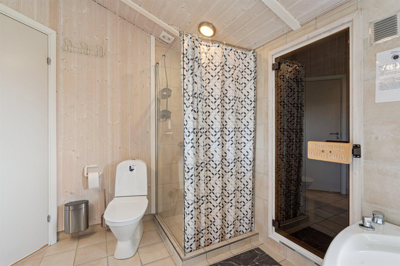 Der er 1 badeværelse med bruseniche og 2 toiletter, heraf 1 gæstetoilet. Der er gulvvarme på 1 badeværelse. Der er gulvvarme på gæstetoilettet. I saunaen er der mulighed for afslapning.