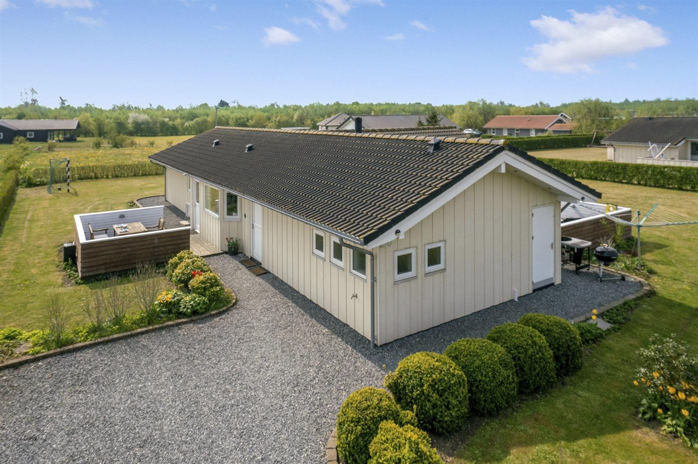 I det populære feriehusområde Skovby Strand nær den bedste badestrand på øen, i rolige omgivelser, ligger dette skønne og velholdte sommerhus velegnet til ophold året rundt. Huset er særdeles velegnet til 2 eller 3 børnefamilier, hvor forældrene ønsker at slappe af samtidig med at børnene kan lege trygt i nærheden.