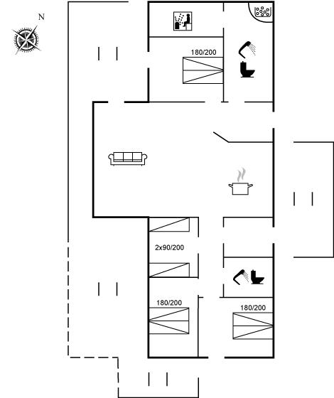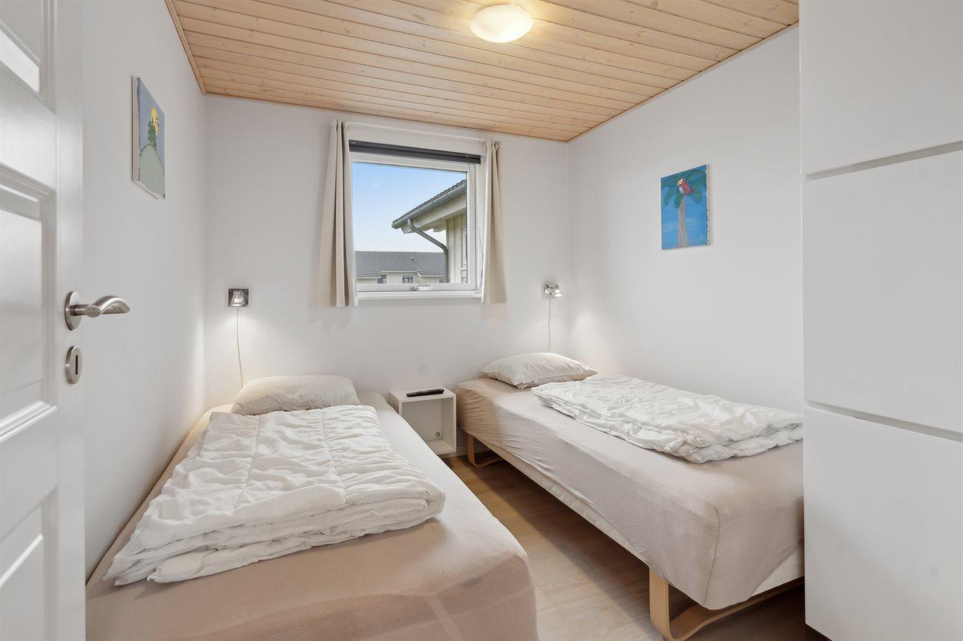 Der er i alt 4 soveværelser. Sovepladserne fordeler sig på: 6 sovepladser i dobbeltsenge. 2 sovepladser i enkeltsenge. Derudover er der 2 stk. barnesenge.