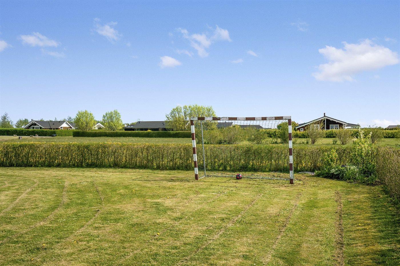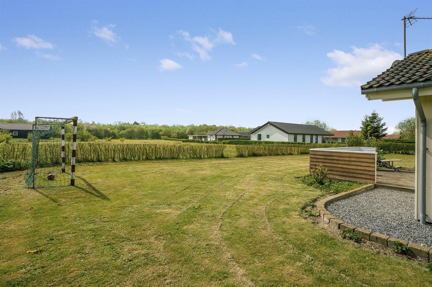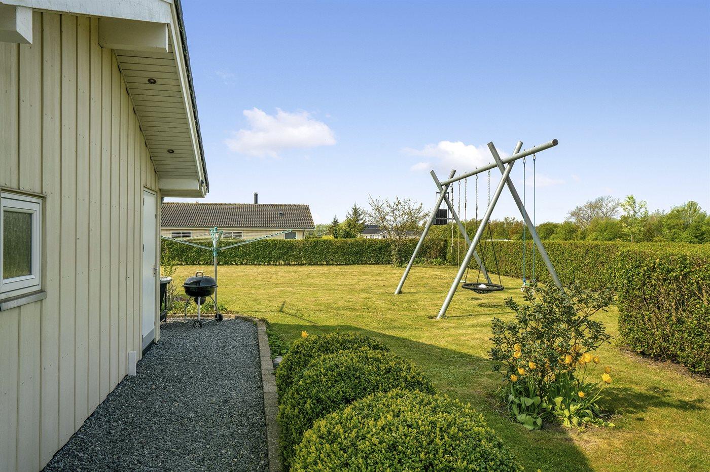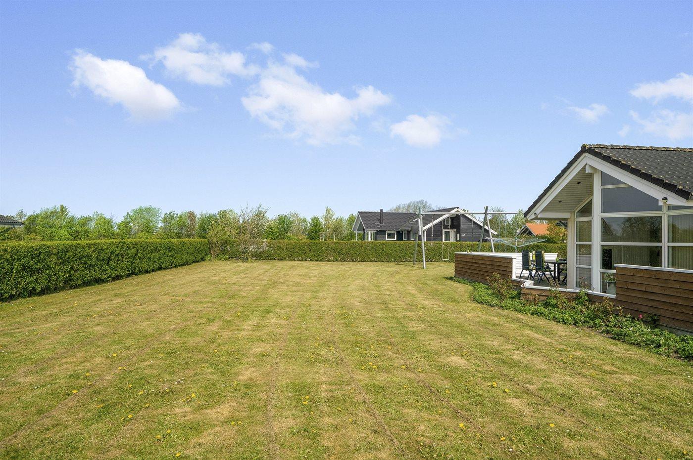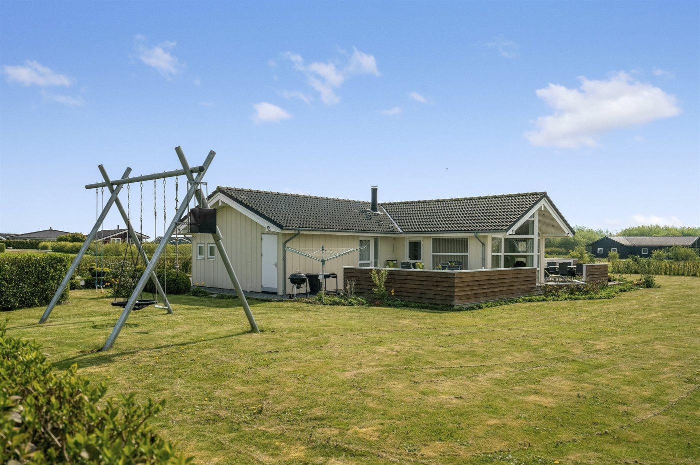 Ferieboligen er beliggende på en 1354 m² stor havegrund. Der er 700 m til havet. Nærmeste forretning er beliggende i en afstand af 1000 m. Til ferieboligen hører 110 m² terrasseareal. Der er redskabsrum. Gynge. Sandkasse. Grill til rådighed. Der er installeret stik til opladning af elbil. Type 2 stik. Med 11 kW ladeeffekt. Parkering ved ferieboligen.