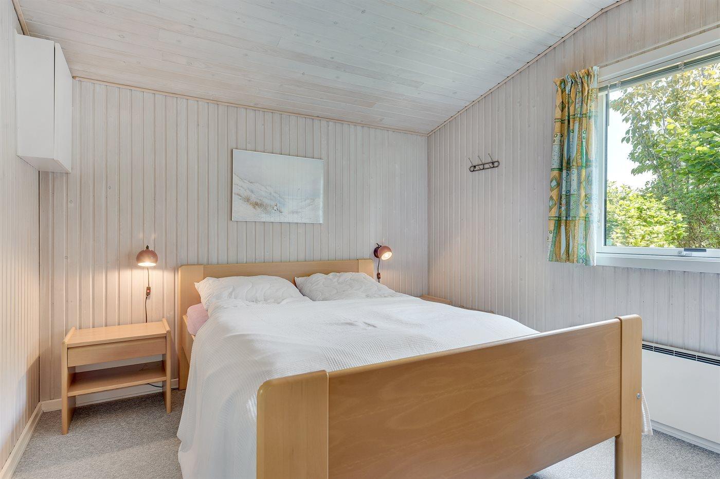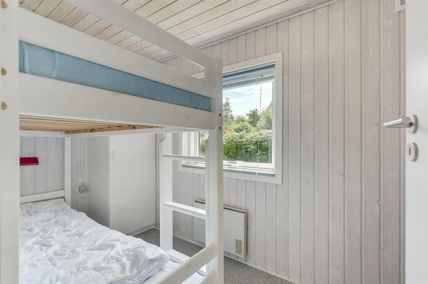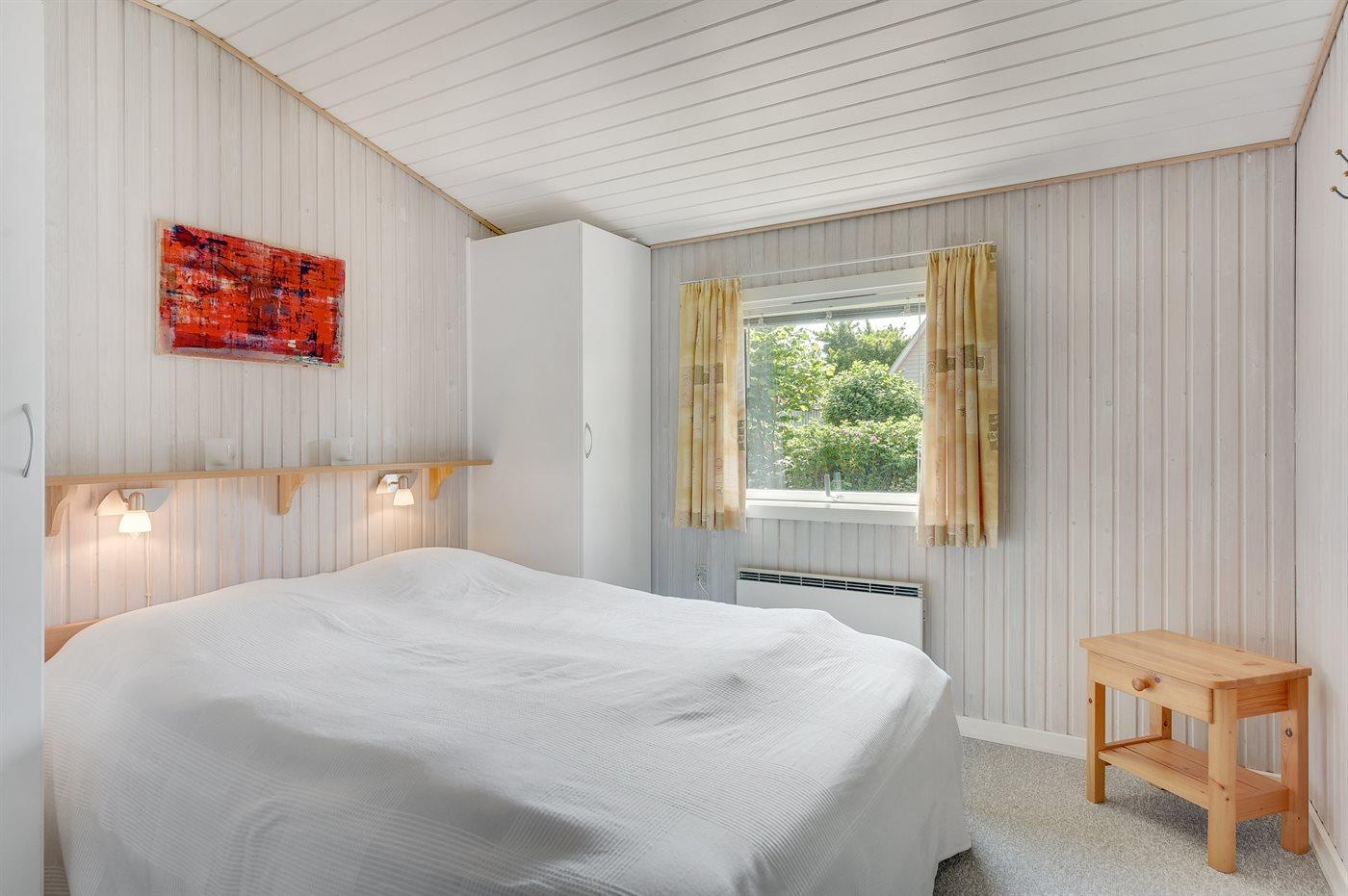 Der er i alt 3 soveværelser. Sovepladserne fordeler sig på: 4 sovepladser i dobbeltsenge. 2 sovepladser i køjeseng. Derudover er der 1 stk. barneseng.