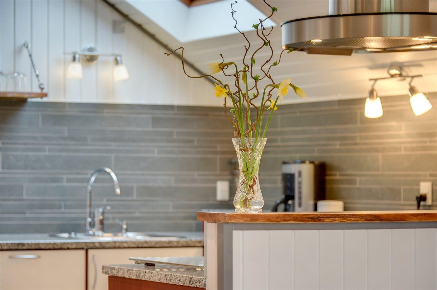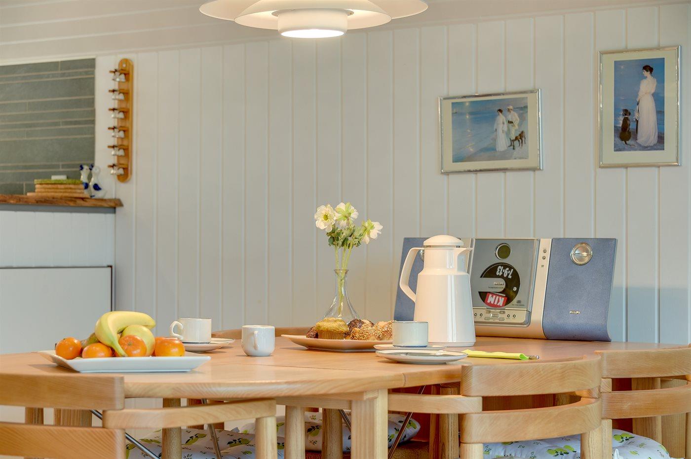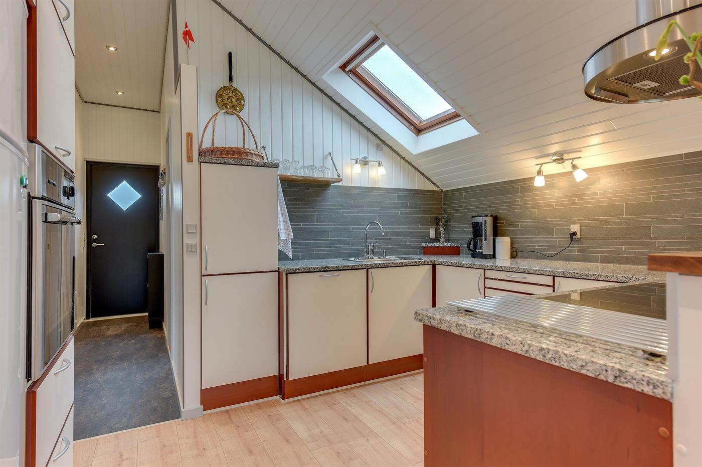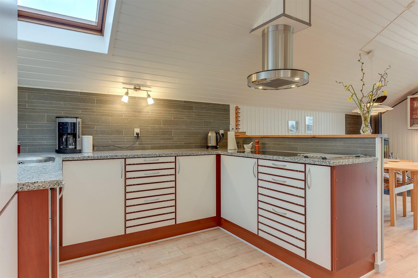 Køkkenet er udstyret med 1 køleskab. Der er 4 induktionskogeplader, varmluftovn, mikrobølgeovn samt opvaskemaskine.