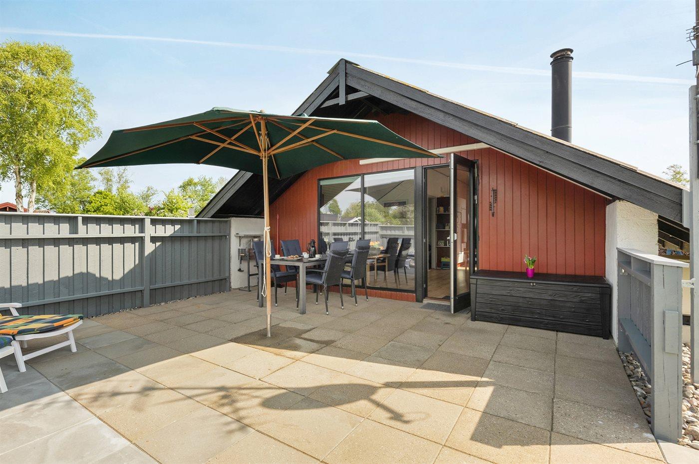 Lyst og renoveret sommerhus i Skovmose med vestvendt terrasse og kun 400 m til strand.