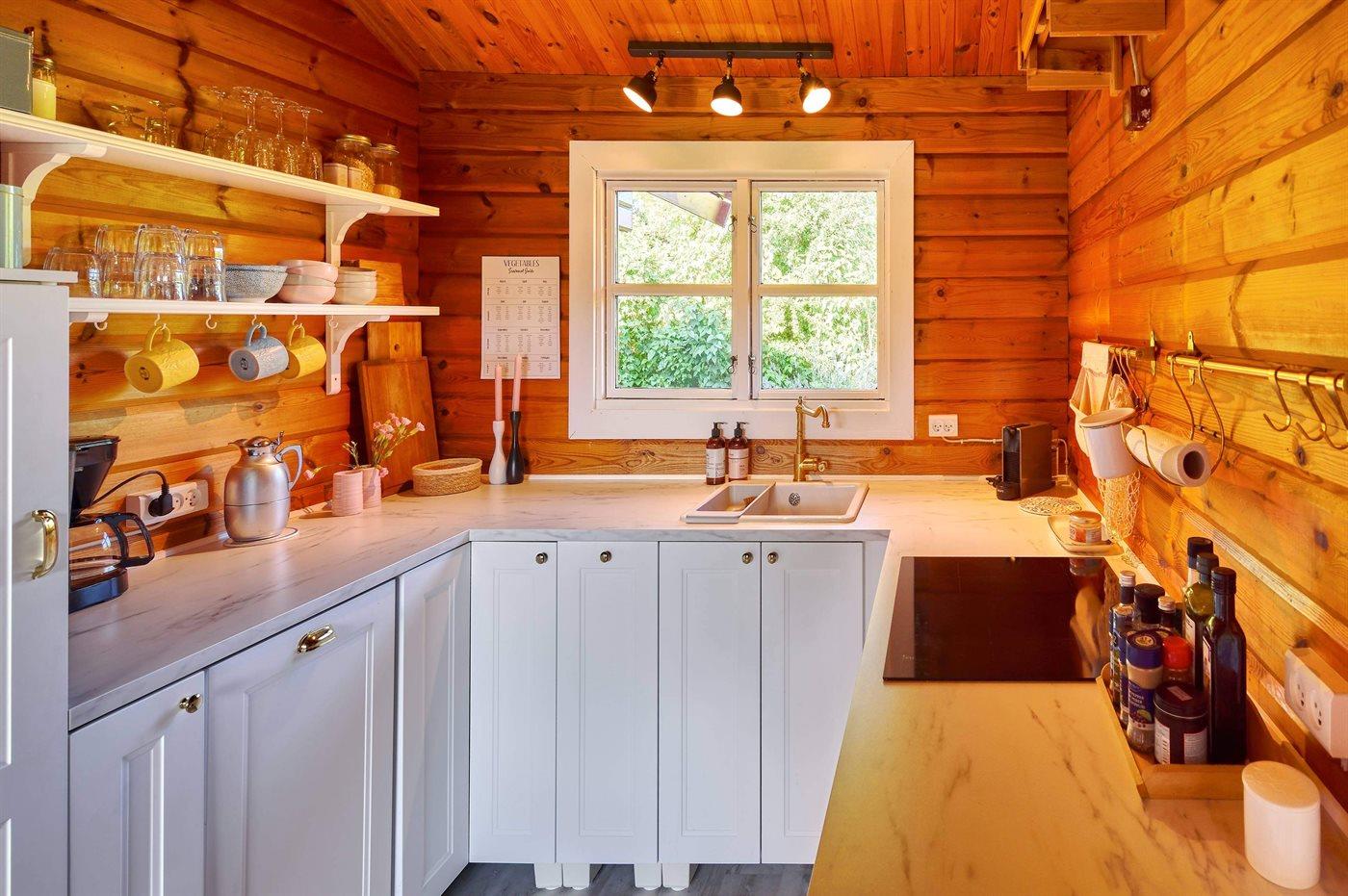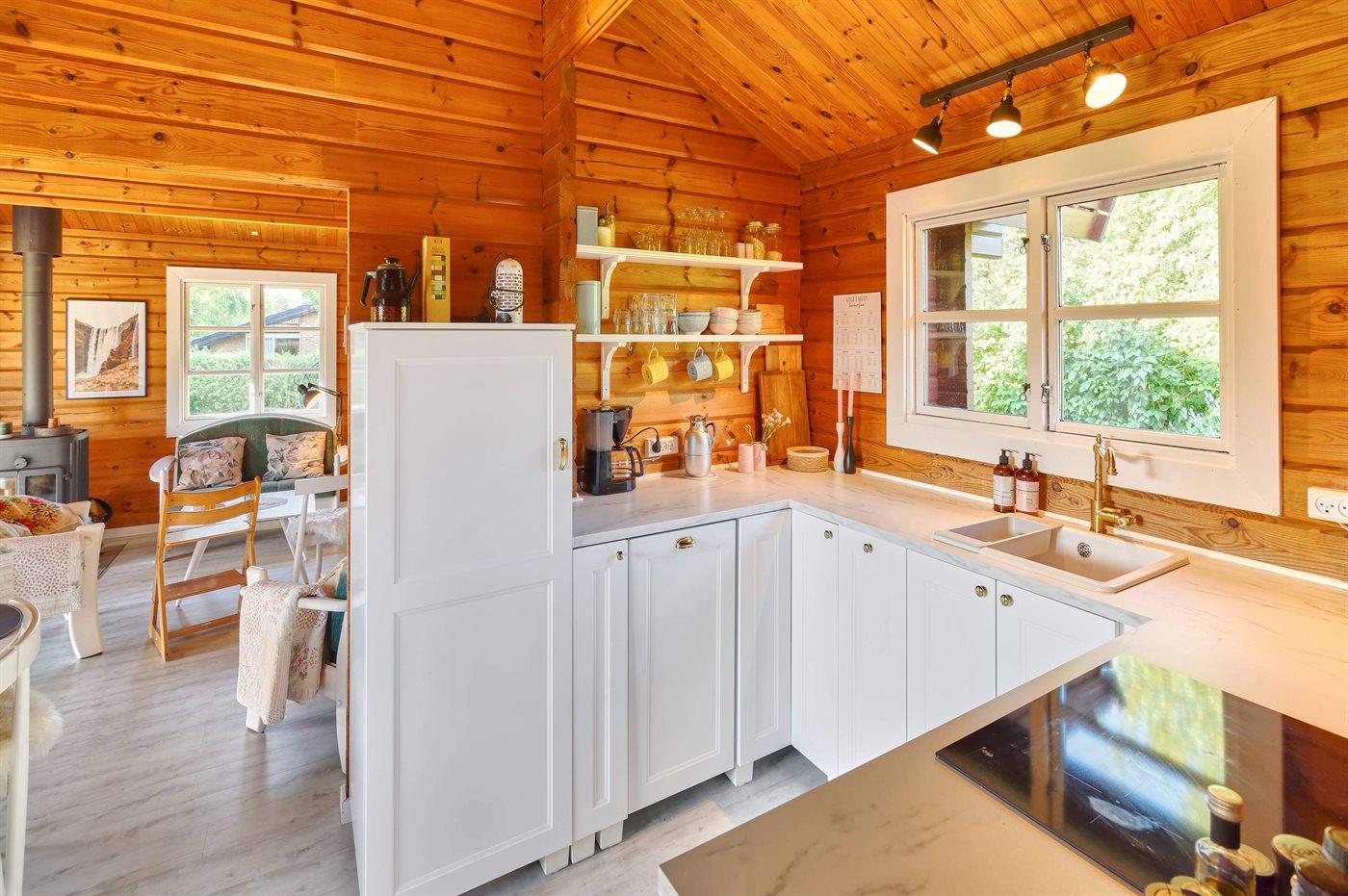Køkkenet er udstyret med 1 køleskab med frysekapacitet på 35 liter, 4 induktionskogeplader, varmluftovn samt opvaskemaskine. Til de små er der 1 stk. barnestol.