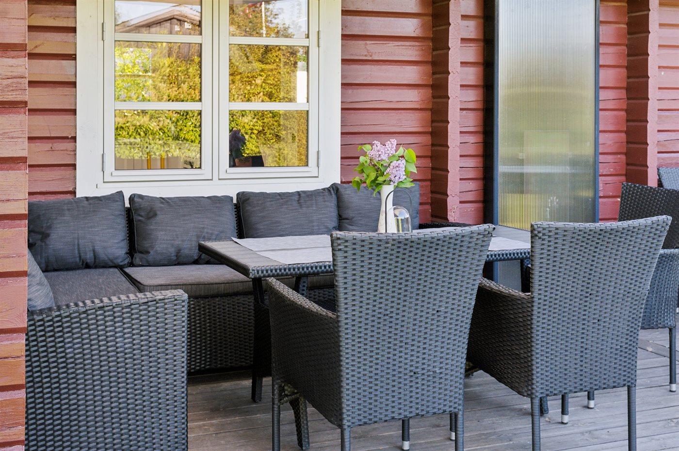 Til ferieboligen hører 75 m² åbent og 12 m² overdækket terrasseareal. Der er grill til rådighed og der kan parkeres ved ferieboligen.