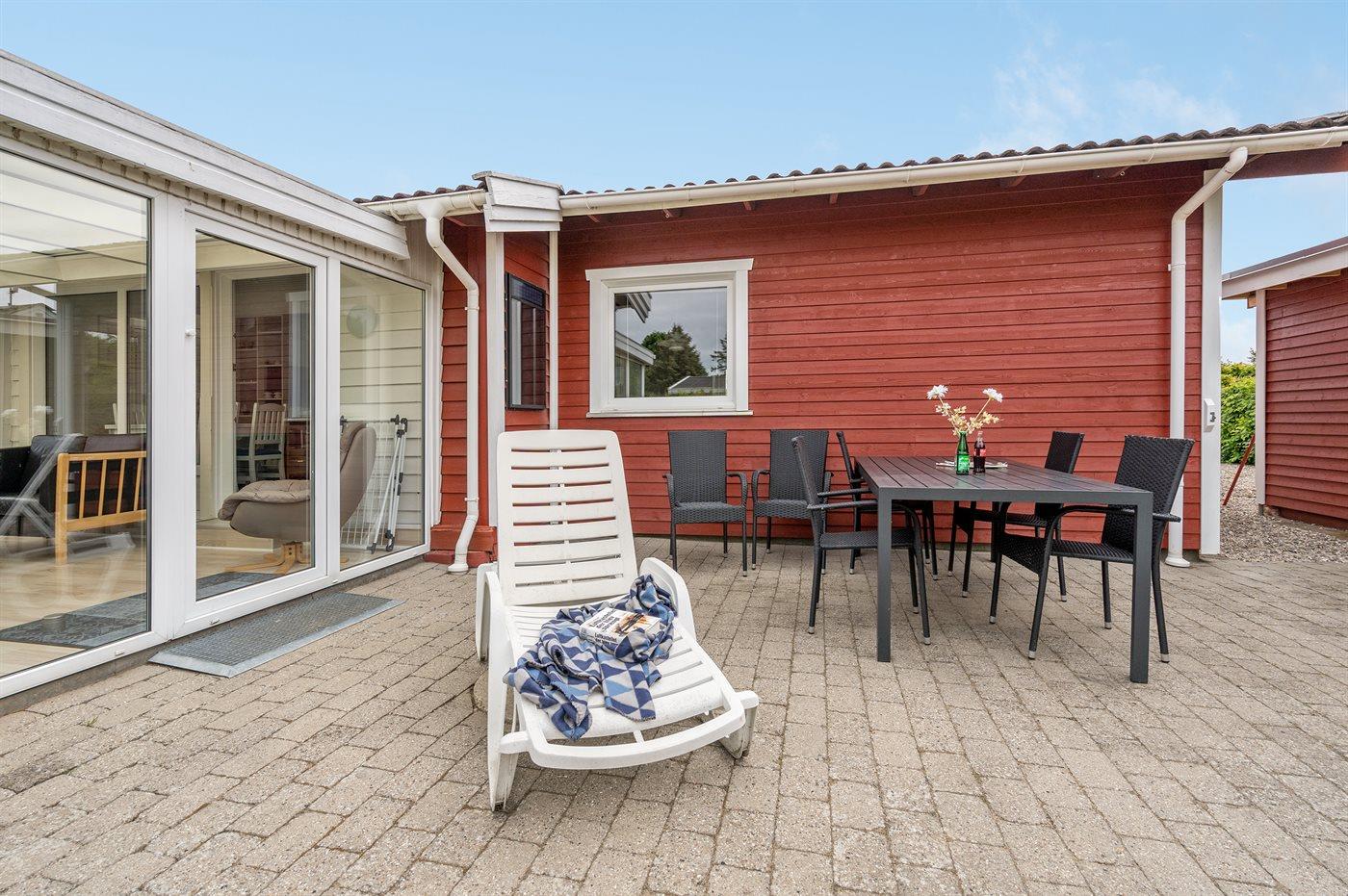 Ferieboligen er beliggende på en 920 m² stor havegrund. Grunden er indhegnet. Der er 450 m til havet. Nærmeste forretning er beliggende i en afstand af 2000 m. Der er en golfbane i en afstand af 15000 m. Til ferieboligen hører 40 m² terrasseareal. Ligeledes er der adgang til udestue. Der er redskabsrum. Grill til rådighed. Parkering ved ferieboligen.