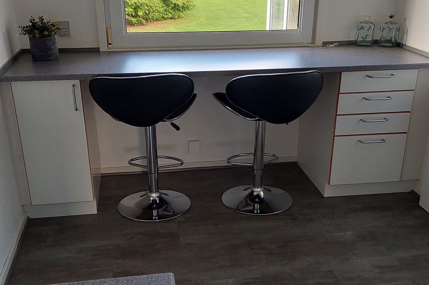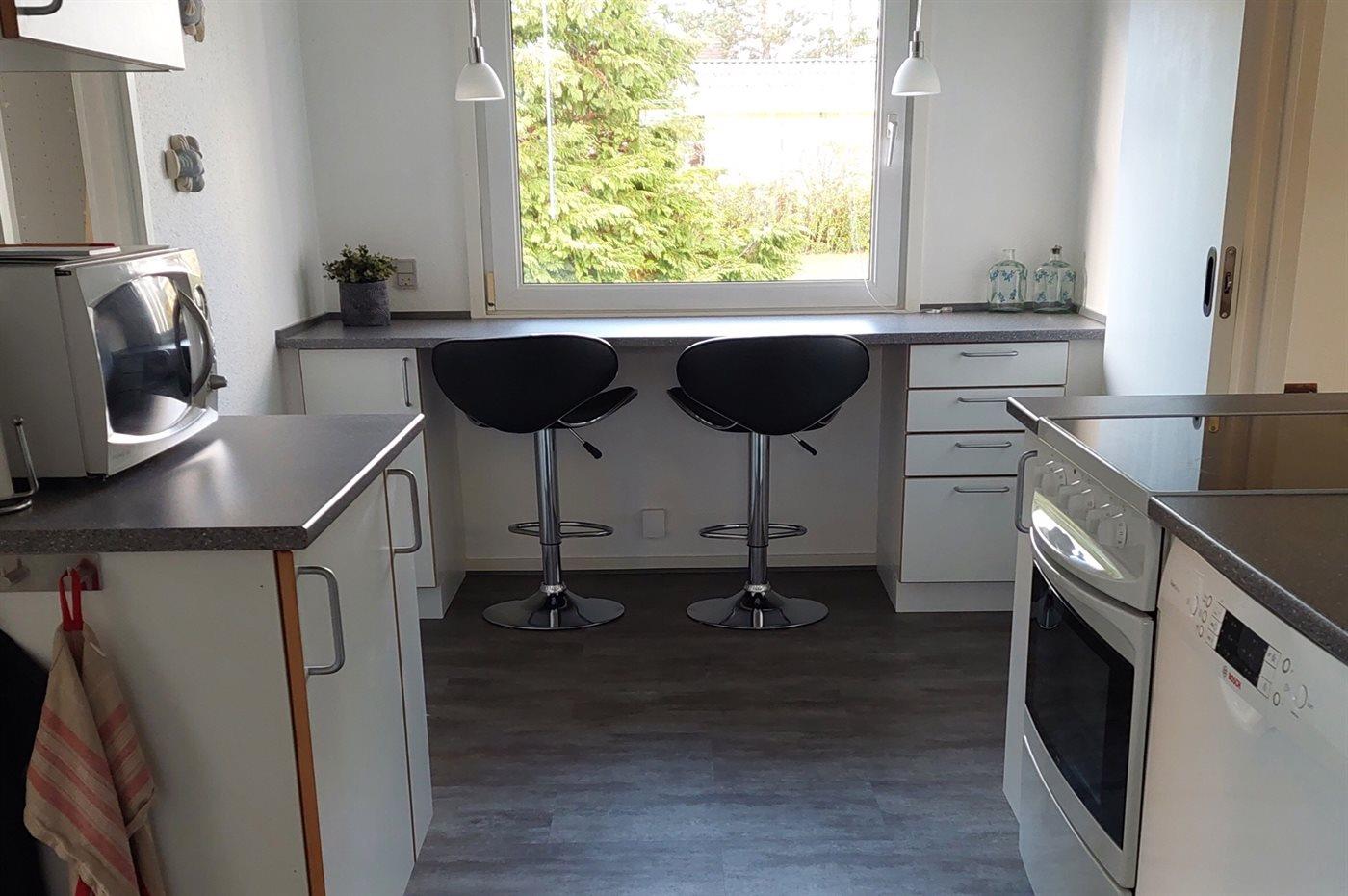 Køkkenet er udstyret med 1 køleskab. Der er 4 keramiske kogeplader, varmluftovn, mikrobølgeovn samt opvaskemaskine.