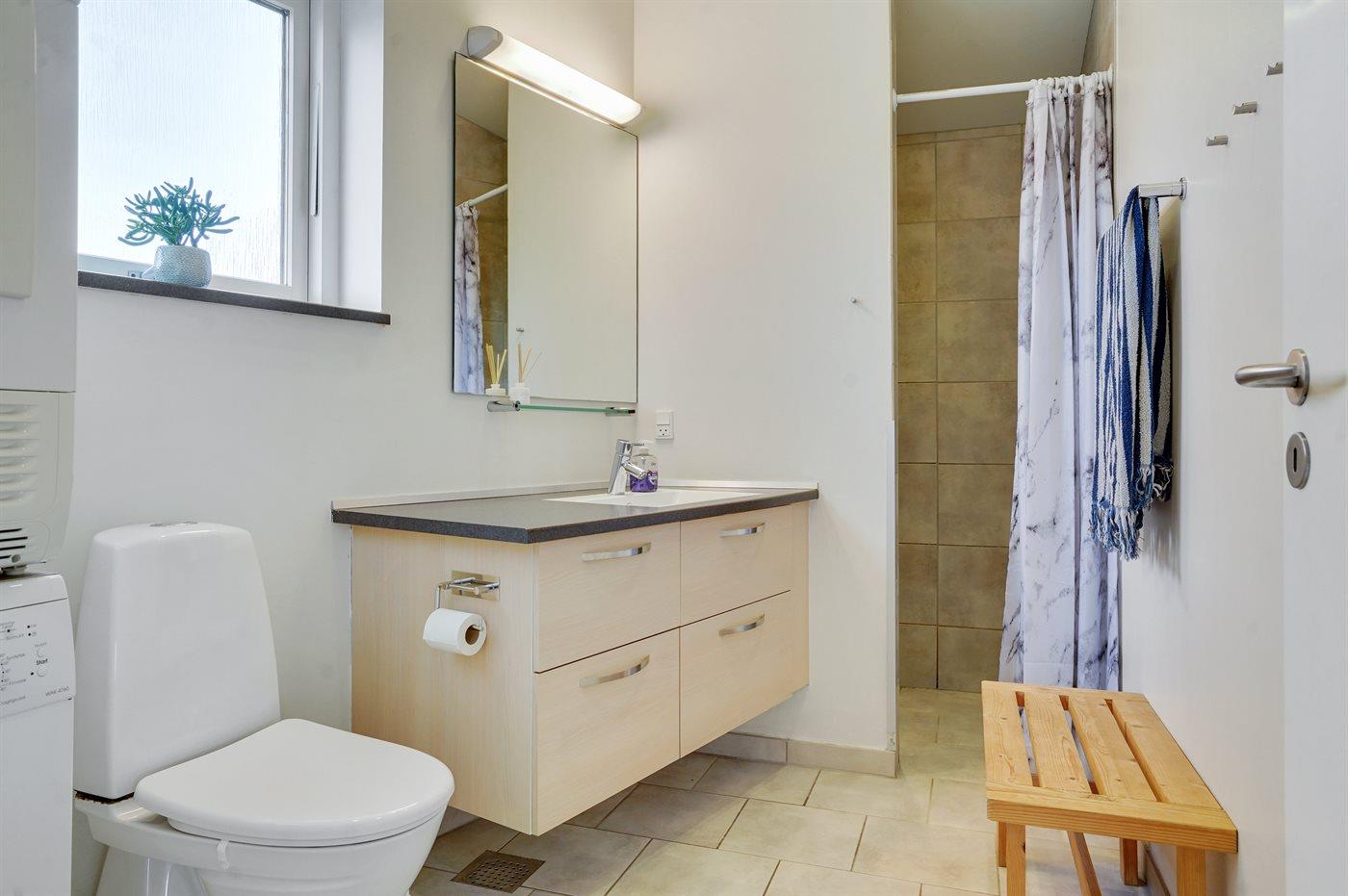 Der er 1 badeværelse med bruseniche og 1 toilet.. Der er gulvvarme på 1 badeværelse.