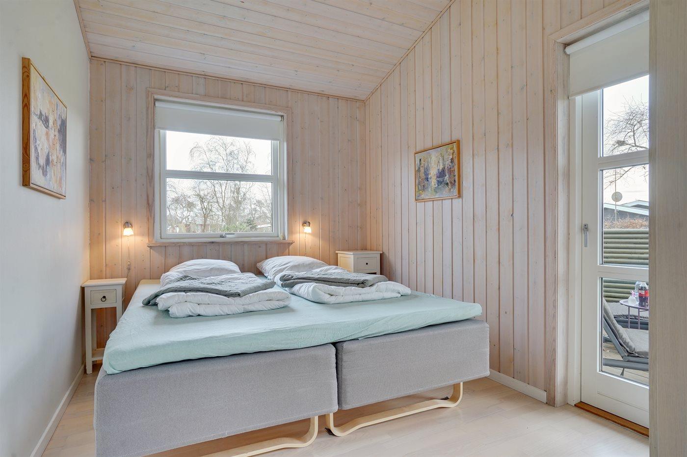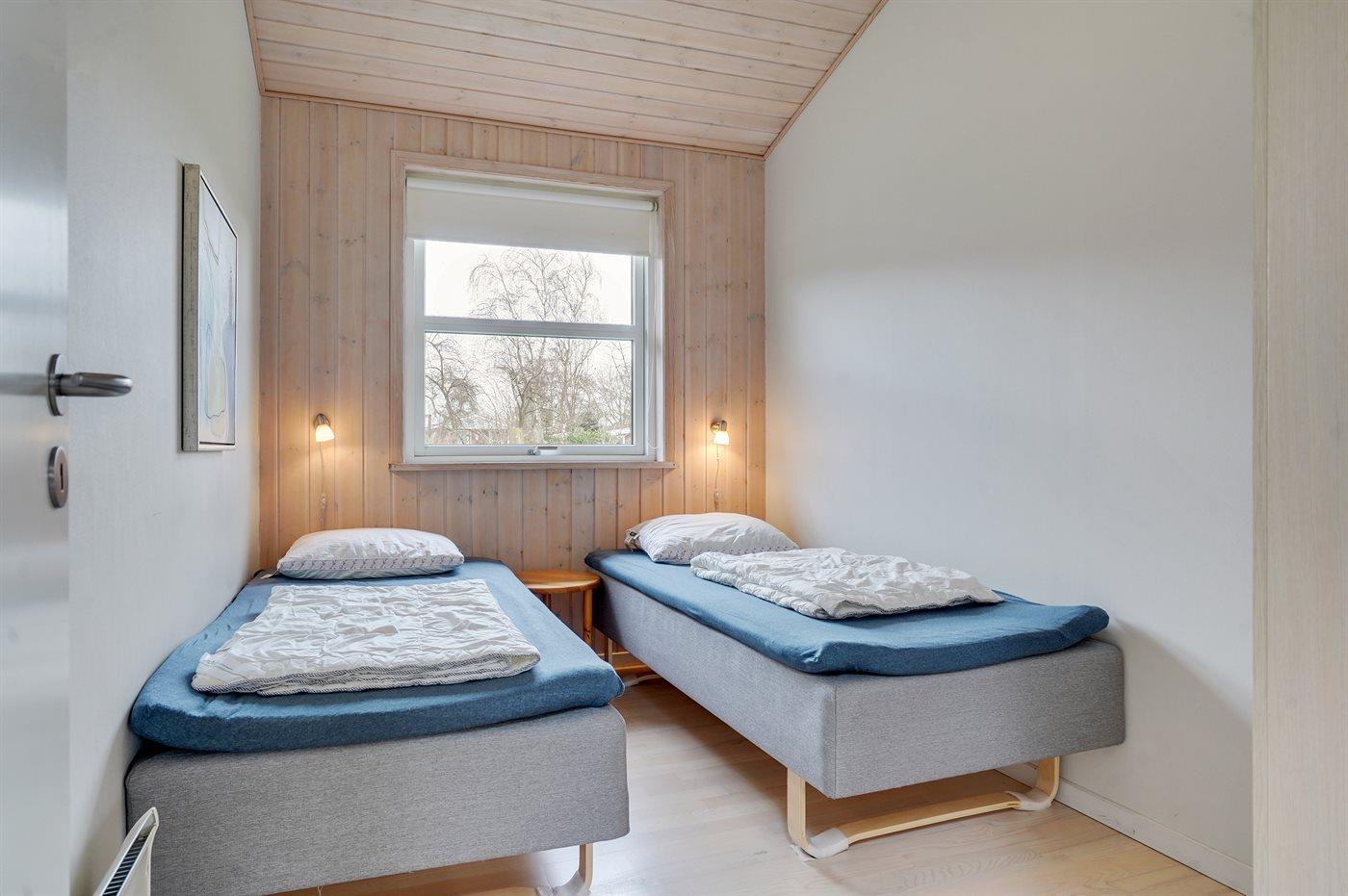 Der er i alt 3 soveværelser. Sovepladserne fordeler sig på: 2 sovepladser i dobbeltseng. 3 sovepladser i enkeltsenge.