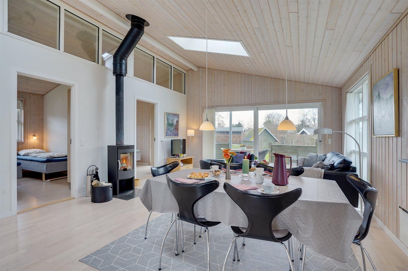 Sommerhuset egner sig til 5 personer. Ferieboligen er på 85 m² og er bygget i 2009. Det er ikke tilladt at medbringe husdyr. Ferieboligen er udstyret med energibesparende varmepumpe.Ferieboligen er udstyret med 1 energibesparende luft til luft varmepumpe. Ferieboligen har vaskemaskine. Tørretumbler. Frysekapacitet på 40 liter. Der er desuden brændeovn. Til de små er der 1 stk. barnestol.