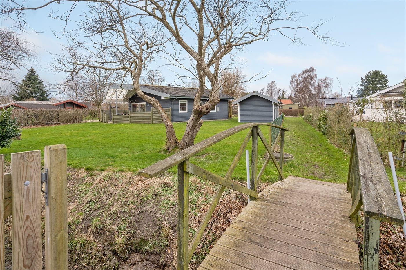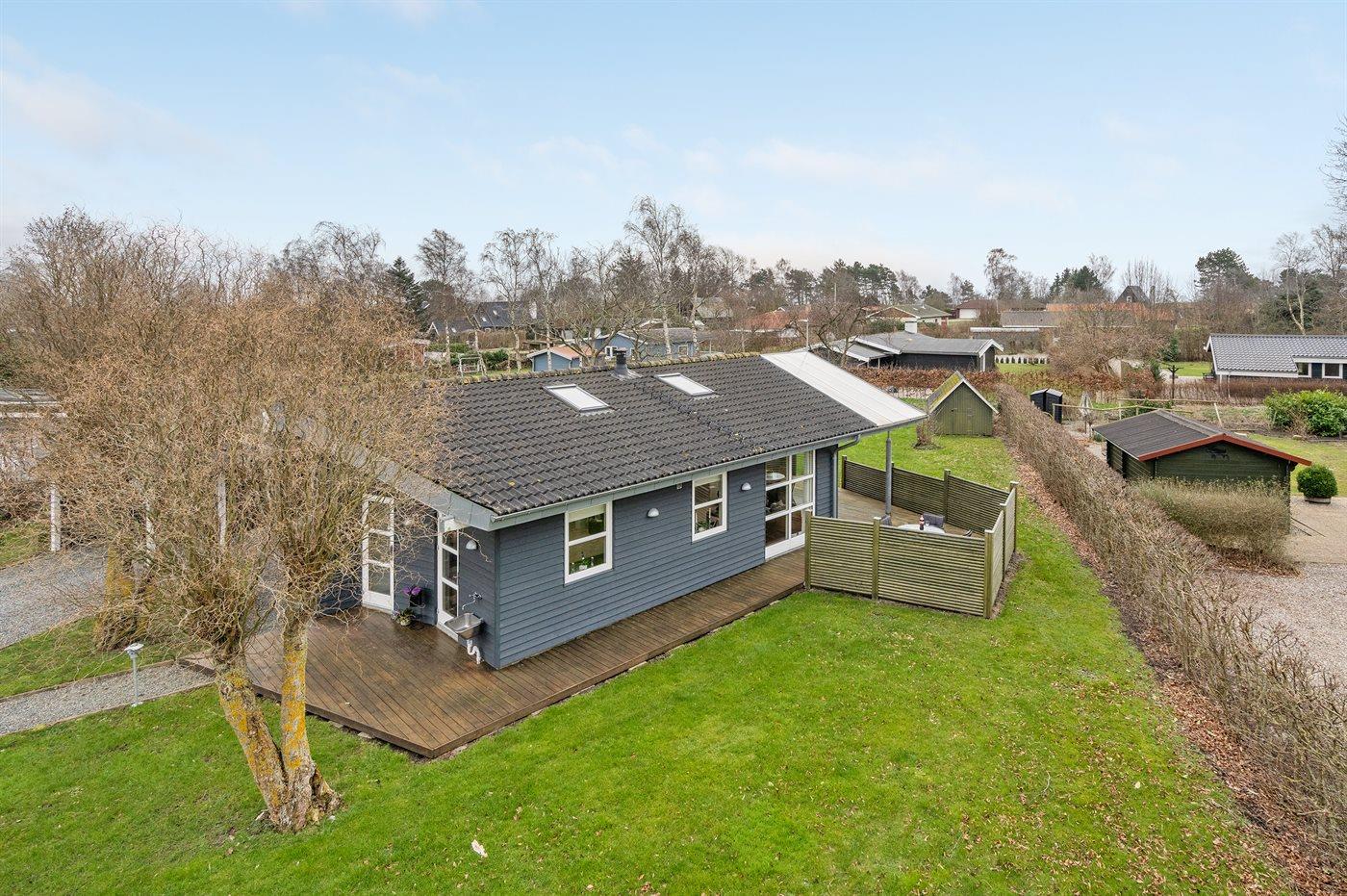 Hyggeligt og velholdt sommerhus i Skovmose tæt på vandet med moderne faciliteter og stor have.