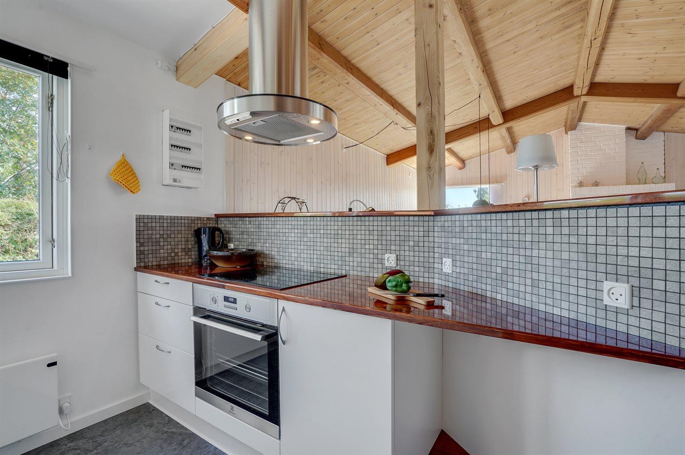 Køkkenet er udstyret med 1 køleskab. Der er 4 induktionskogeplader, varmluftovn, mikrobølgeovn samt opvaskemaskine.