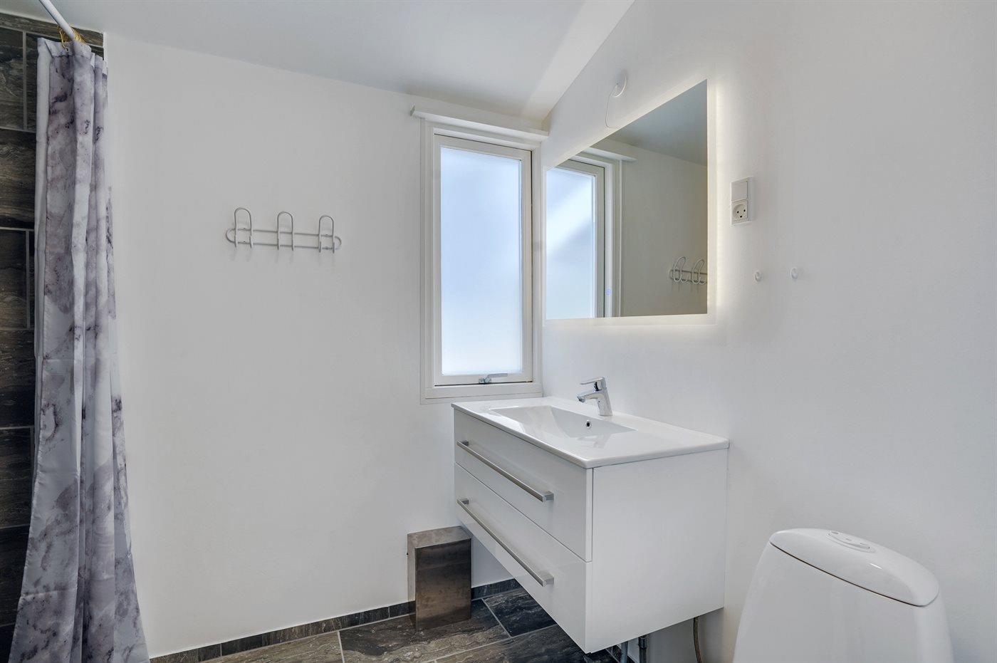 Der er 1 badeværelse med bruseniche og 1 toilet.. Der er gulvvarme på 1 badeværelse.