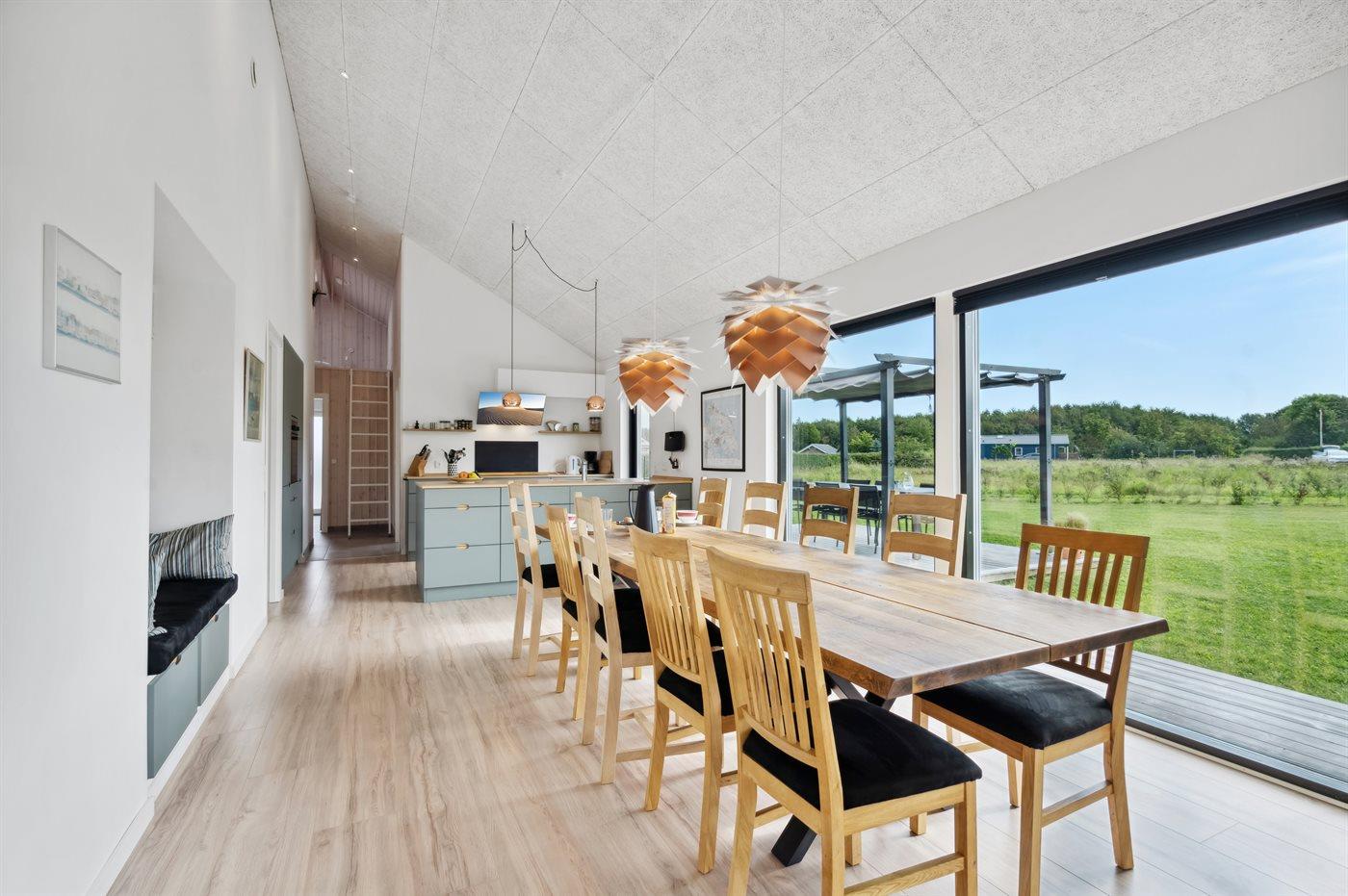 Køkkenet er udstyret med 1 køleskab. Der er 4 induktionskogeplader, varmluftovn, mikrobølgeovn samt opvaskemaskine.