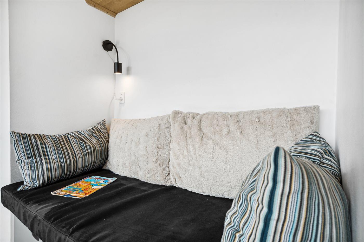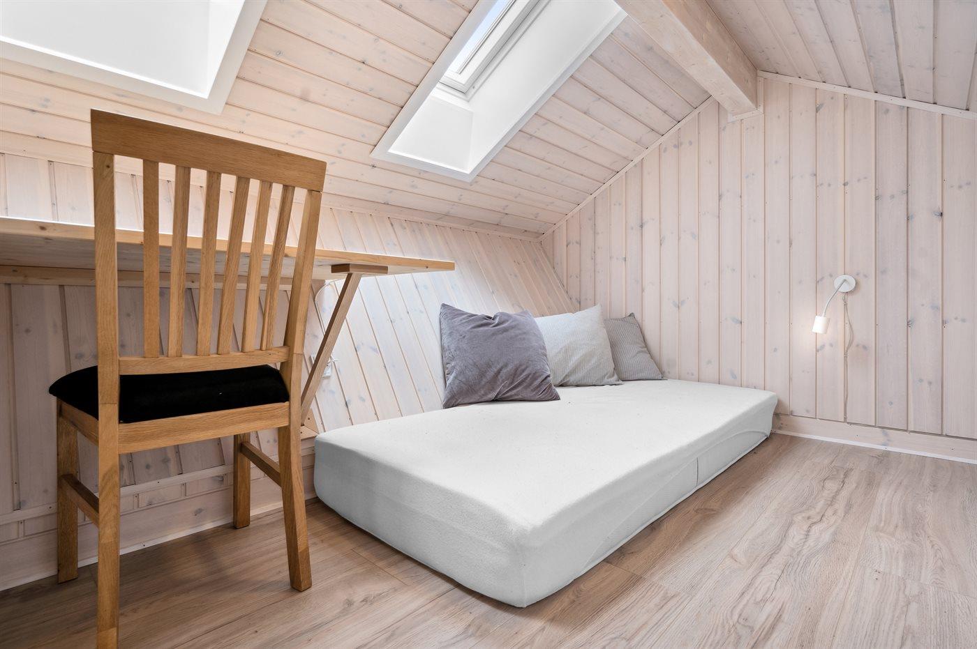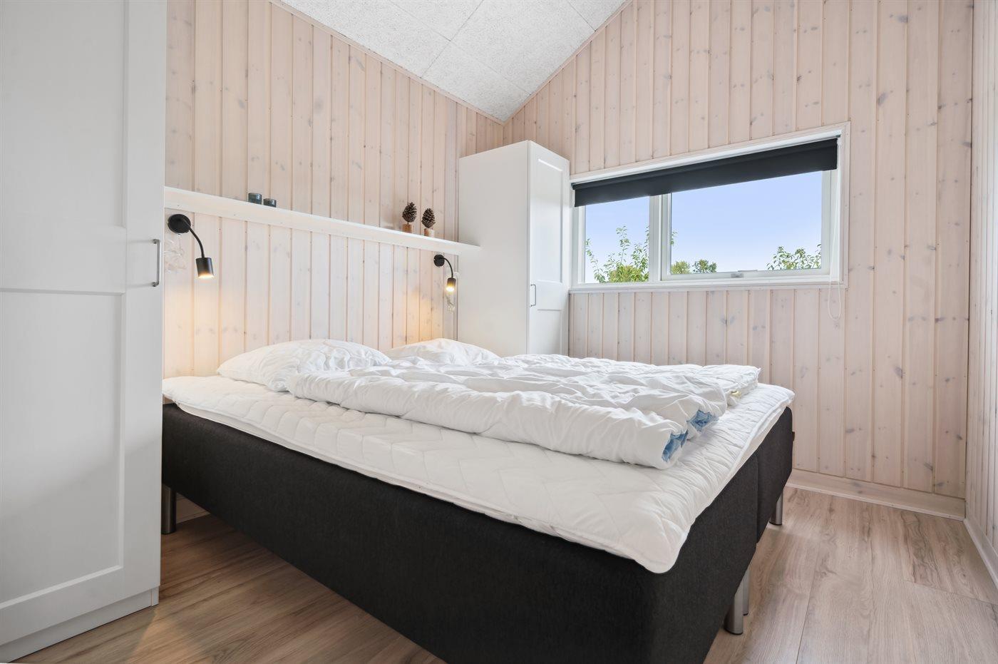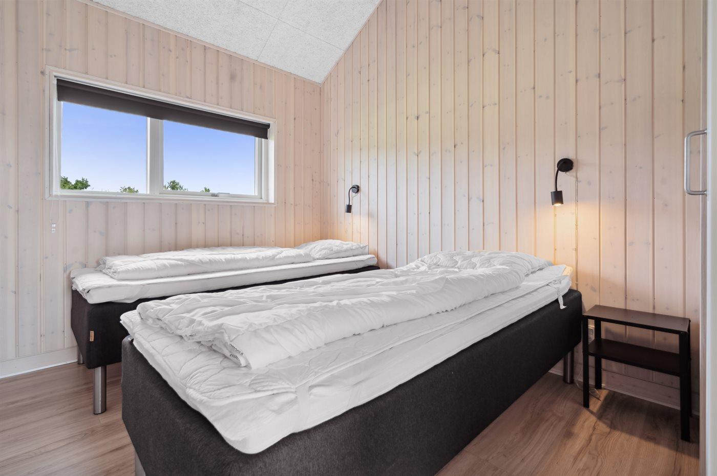 Der er i alt 4 soveværelser. Sovepladserne fordeler sig på: 6 sovepladser i dobbeltsenge. 2 sovepladser i enkeltsenge. Derudover er der 1 stk. barneseng.