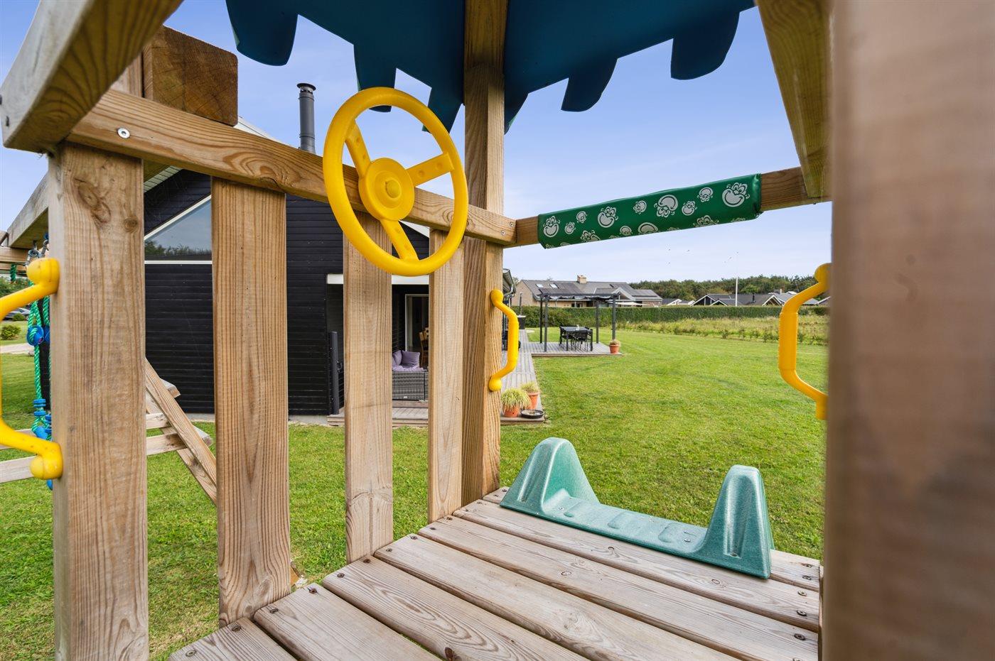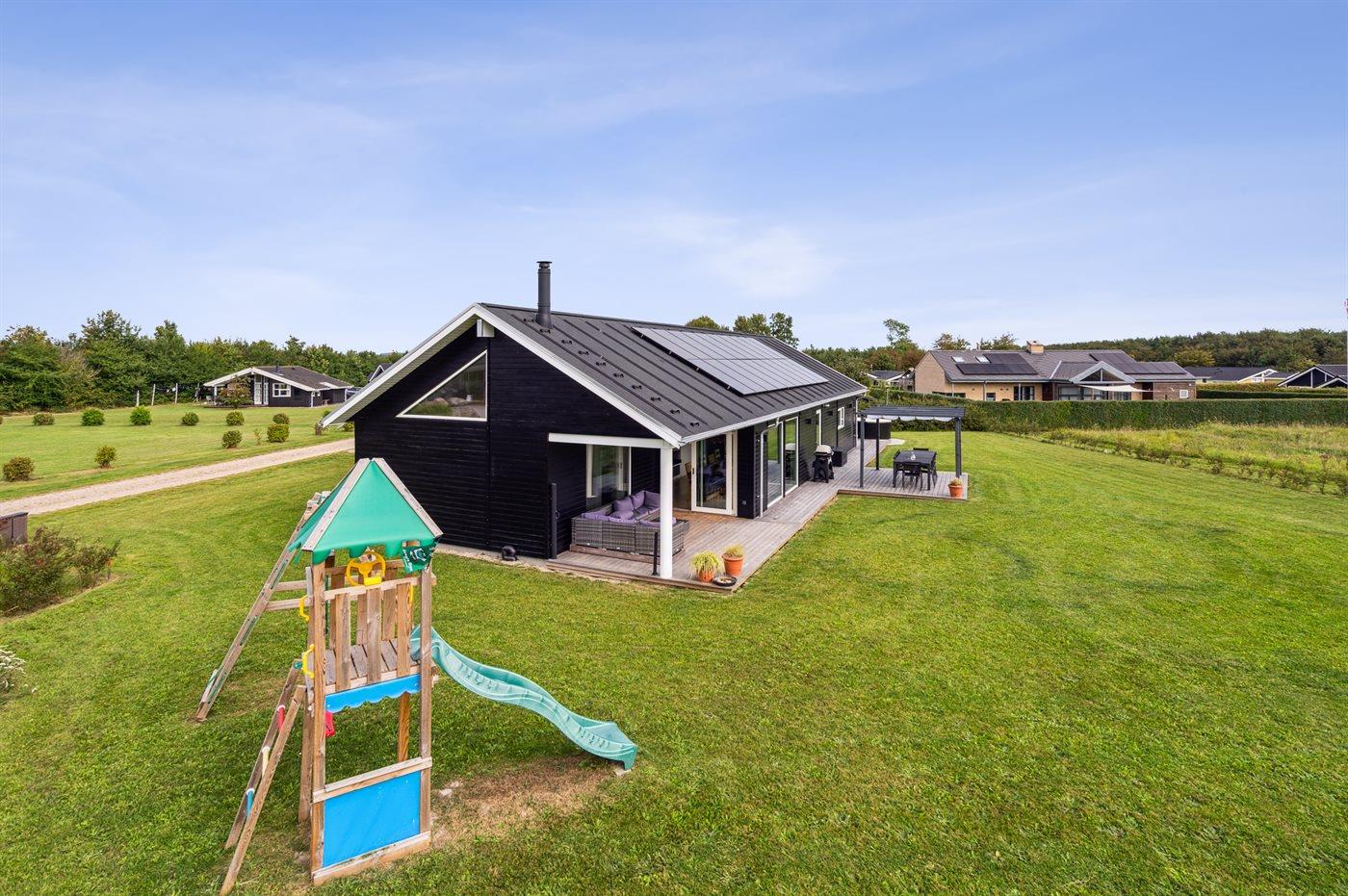 Sommerhus i Skovmose med 4 soveværelser og 1 legeværelse. Huset, der er fra 2022, er belliggende tæt på fantastisk sandstrand.