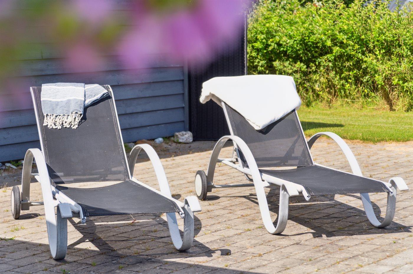 Ferieboligen er beliggende på en 1164 m² stor havegrund. Der er 800 m til havet. Nærmeste forretning er beliggende i en afstand af 2000 m. Der er en golfbane i en afstand af 12000 m. Til ferieboligen hører åbent terrasseareal. Desuden er der overdækket terrasse. Der er redskabsrum. Gynge. Sandkasse. Rutchebane. Fodboldmål. Der er en 10-hullers krolfbane i haven. Grill til rådighed. Udendørs vask. Parkering ved ferieboligen.