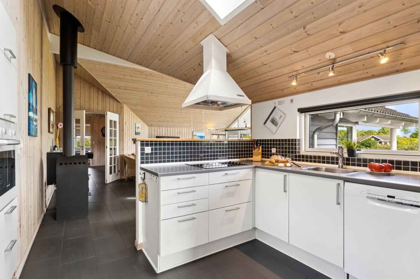 Køkkenet er udstyret med 1 køleskab. Der er 4 keramiske kogeplader, varmluftovn, mikrobølgeovn samt opvaskemaskine.