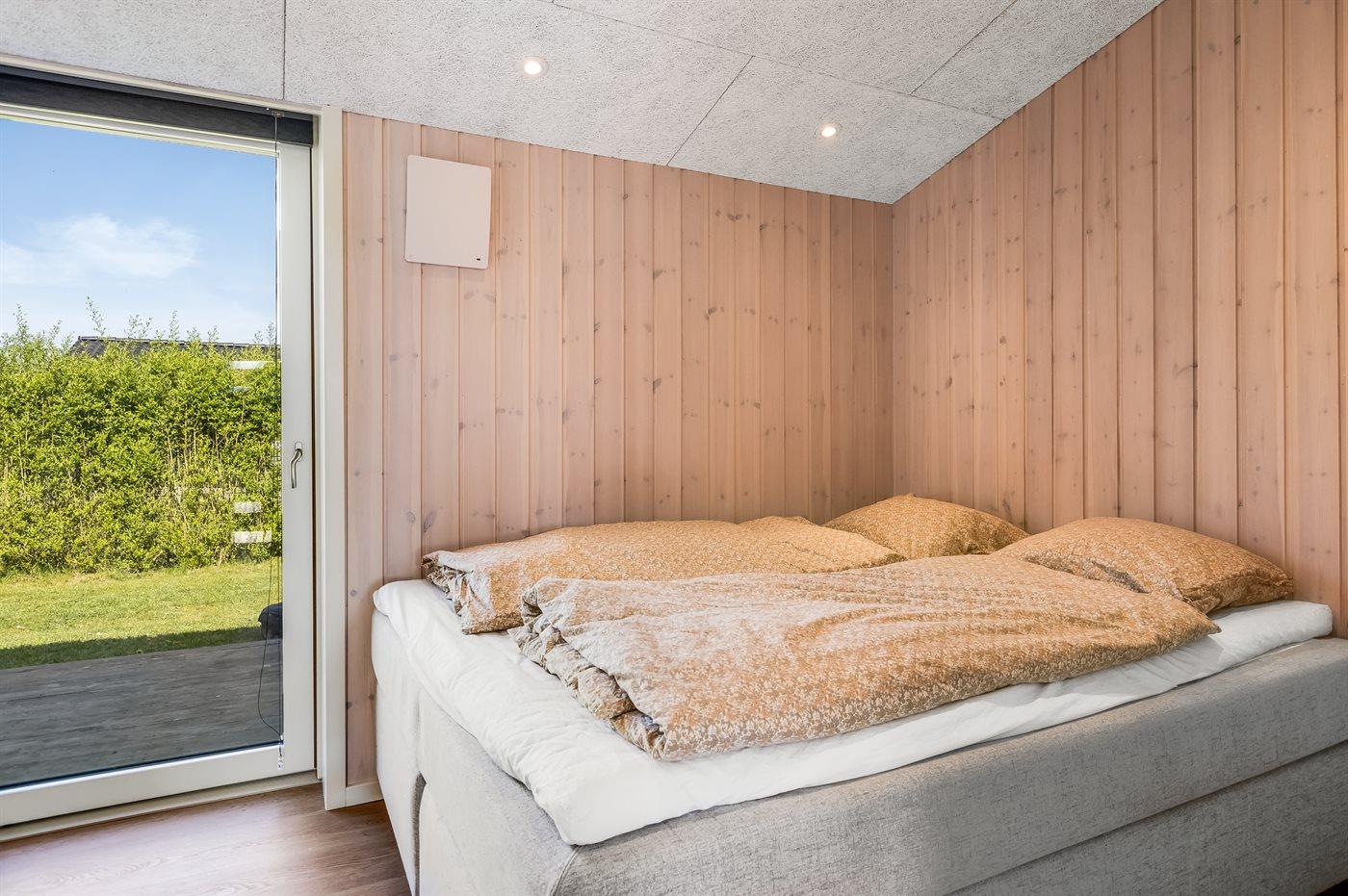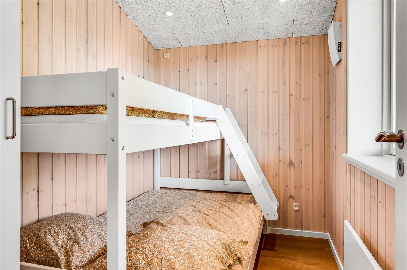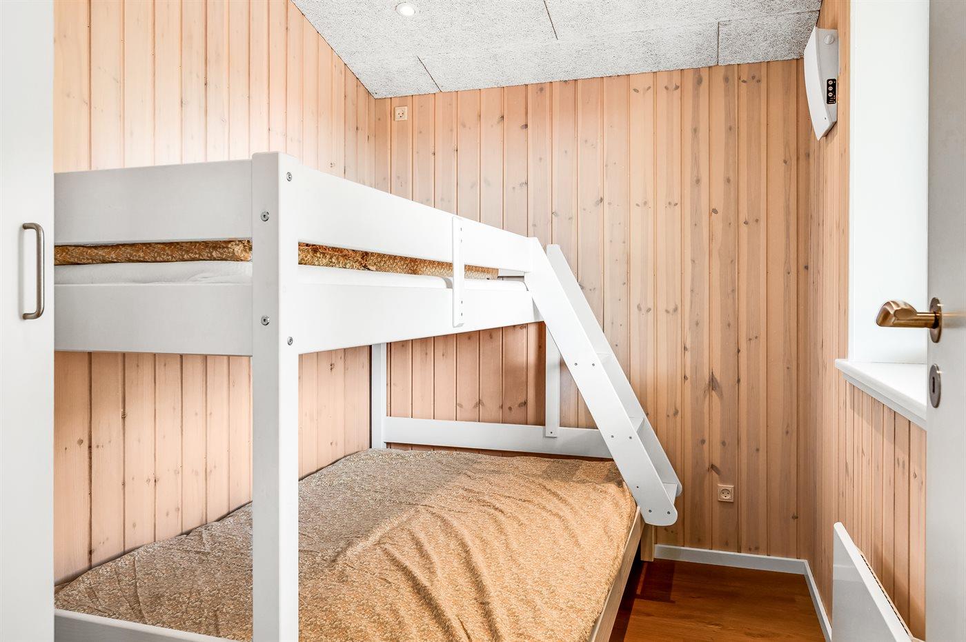 Der er i alt 3 soveværelser. Sovepladserne fordeler sig på: 4 sovepladser i dobbeltsenge. 3 sovepladser i køjesenge. Derudover er der 1 stk. barneseng.