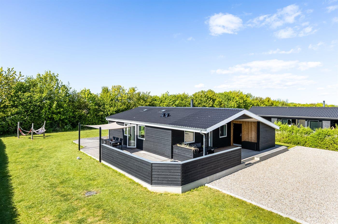 Nyt sommerhus færdigbygget i 2025 og udført i gode materialer. Feriehuset ligger i Skovmose tæt ved den skønneste badestrand.