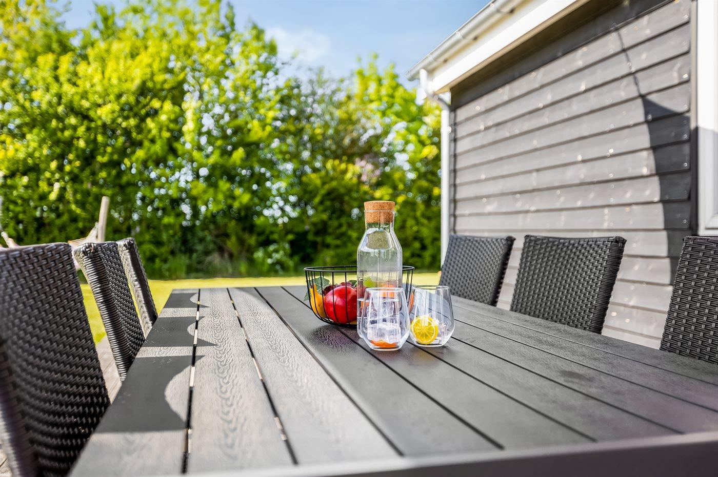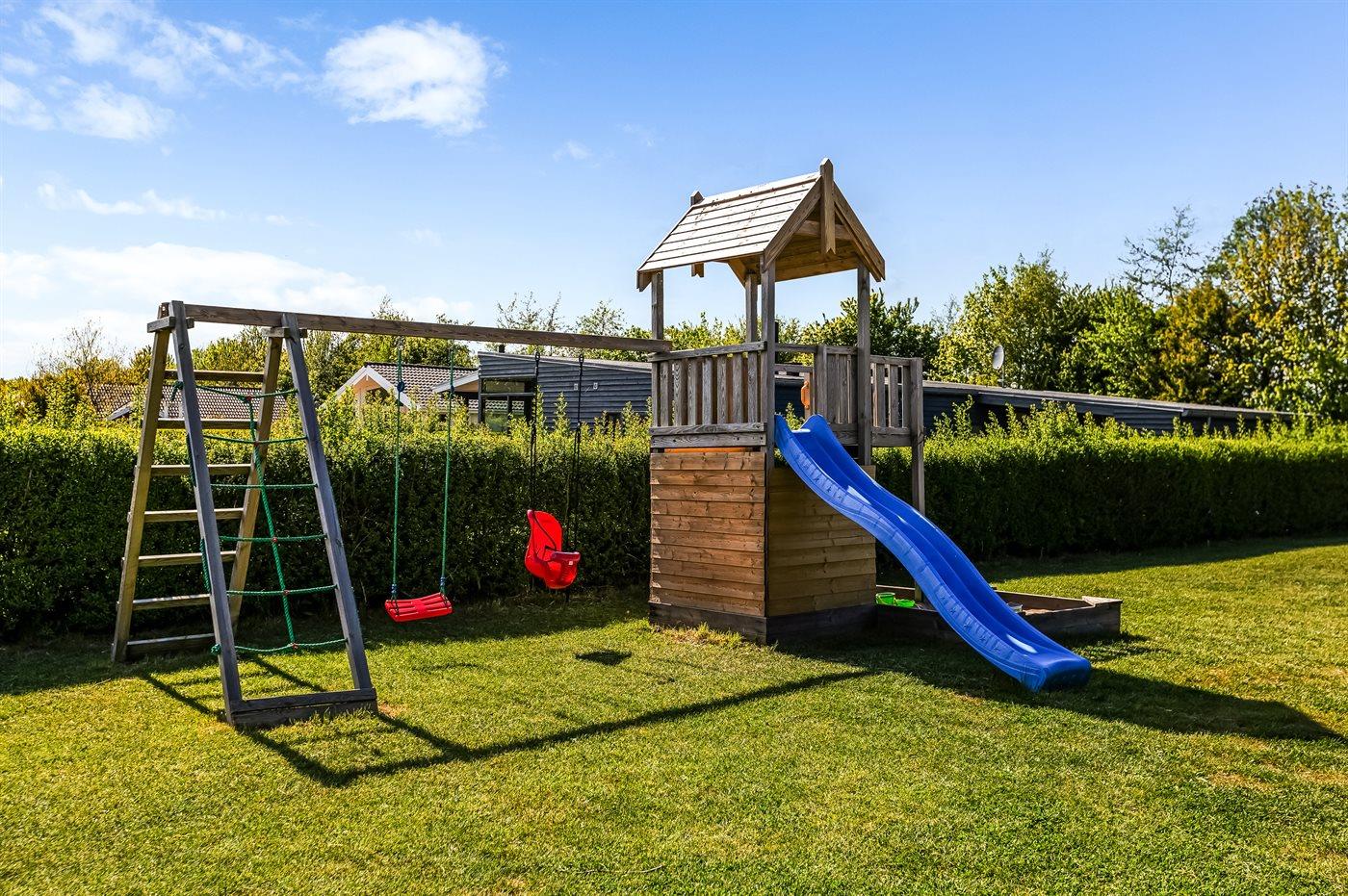 Ferieboligen er beliggende på en 1080 m² stor naturgrund. Der er 700 m til havet. Nærmeste forretning er beliggende i en afstand af 2000 m. Der er en golfbane i en afstand af 14000 m. Til ferieboligen hører åbent terrasseareal. Desuden er der overdækket terrasse. Gynge. Sandkasse. Trampolin. Legetårn. Grill til rådighed. Parkering ved ferieboligen.