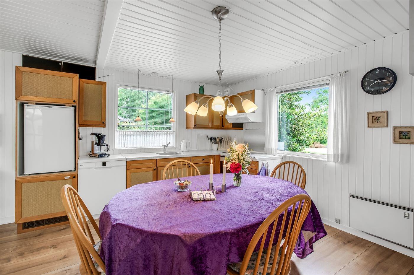 Hyggeligt ældre sommerhus med brændeovn og terrasse kun 300 m fra havet i Skovmose.