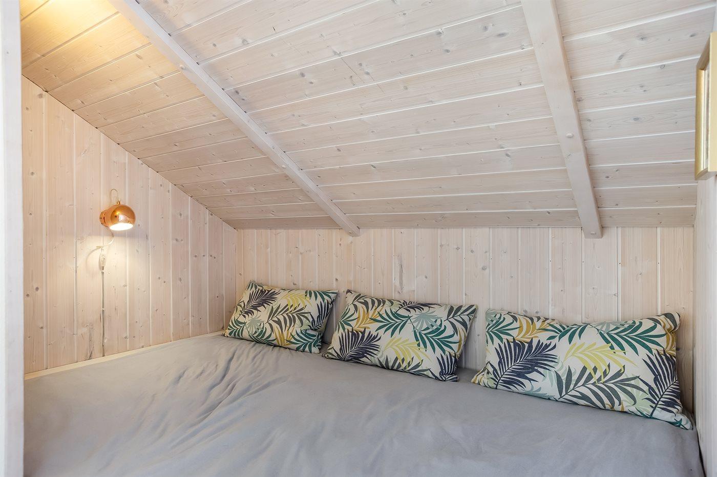 Der er i alt 3 soveværelser. Sovepladserne fordeler sig på: 4 sovepladser i dobbeltsenge. 2 sovepladser i enkeltsenge. 2 sovepladser i alkove. 2 af disse sovepladser befinder sig i stuen. Derudover er der 1 stk. barneseng.