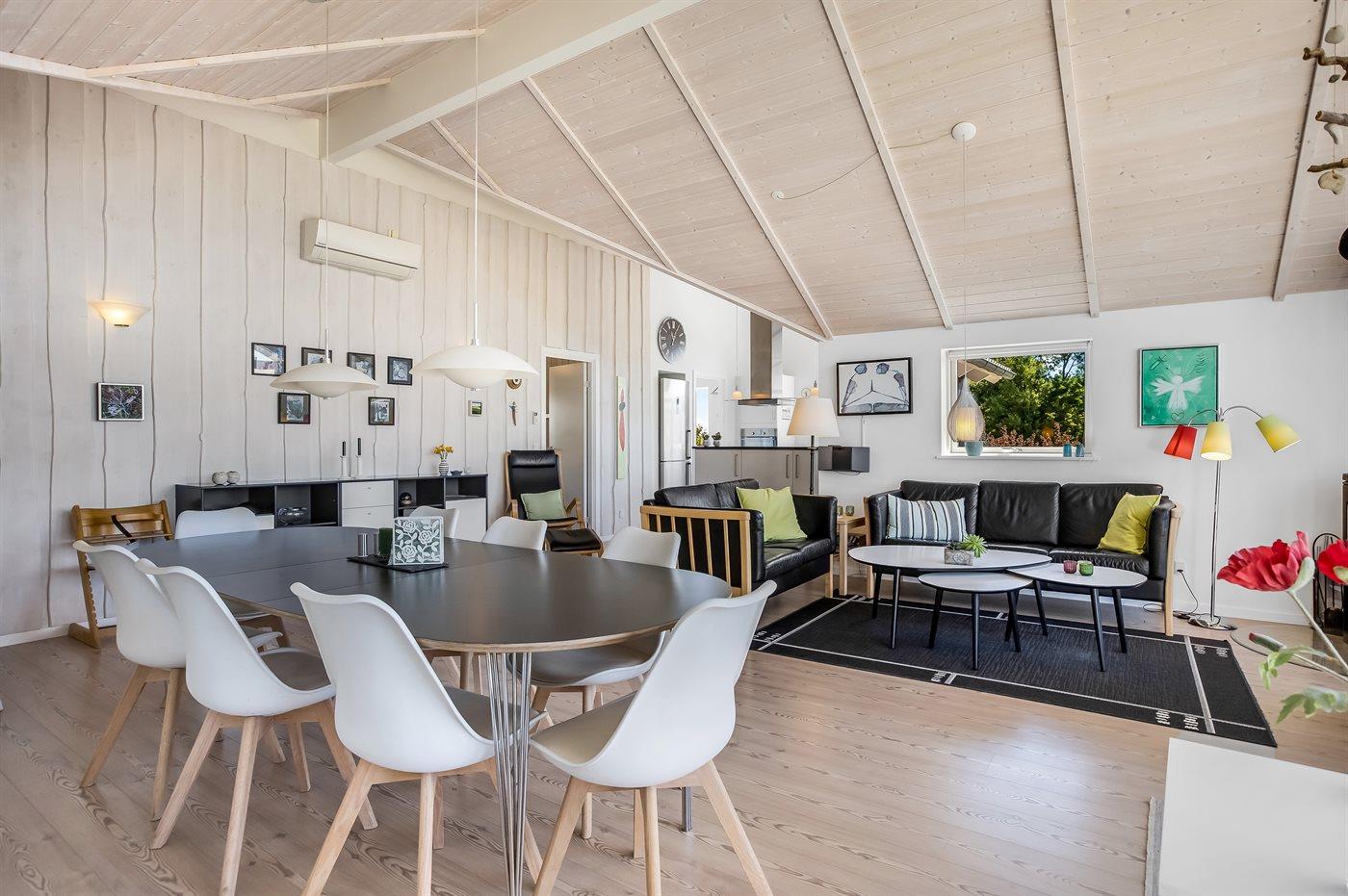 Sommerhuset egner sig til 8 personer samt 1 barn op til 3 år. Ferieboligen er på 113 m² og er bygget i 2015. Det er tilladt at medbringe 1 husdyr. Ferieboligen er udstyret med energibesparende luft til luft varmepumpe. Ferieboligen har vaskemaskine. Tørretumbler. Frysekapacitet på 50 liter. Der er desuden brændeovn. Til de små er der 1 stk. barnestol.