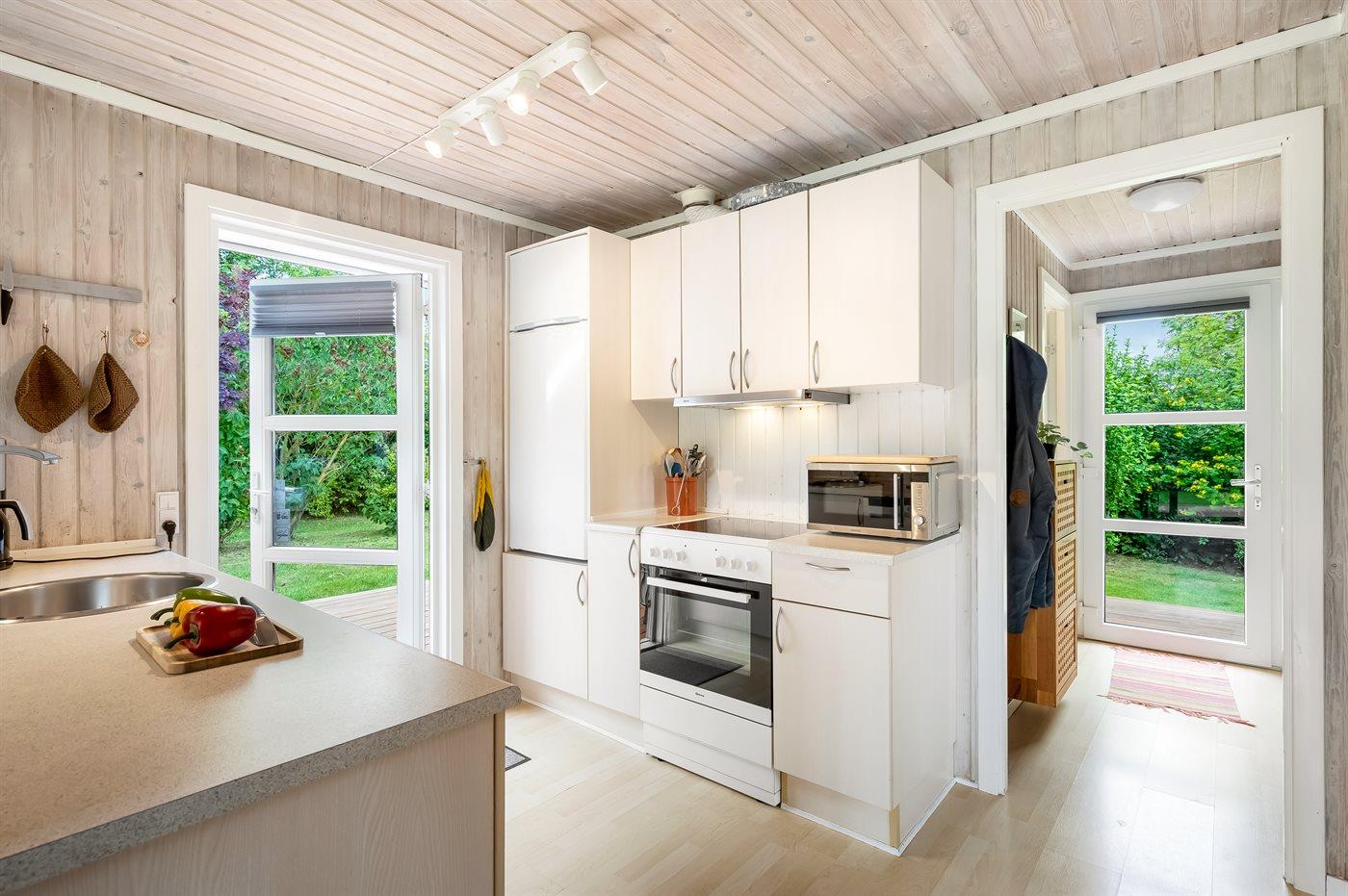 Køkkenet er udstyret med 1 køleskab. Der er 4 keramiske kogeplader, varmluftovn, mikrobølgeovn samt opvaskemaskine.