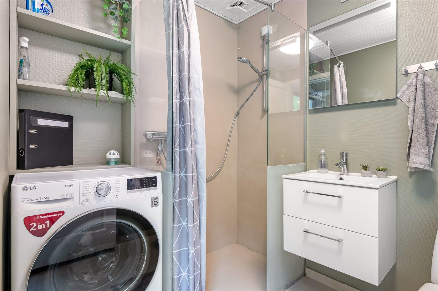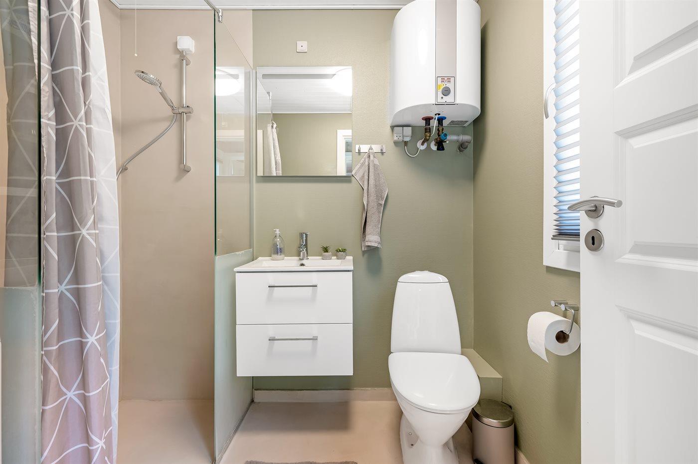 Der er 1 badeværelse med bruser og 1 toilet.. Der er gulvvarme på 1 badeværelse.