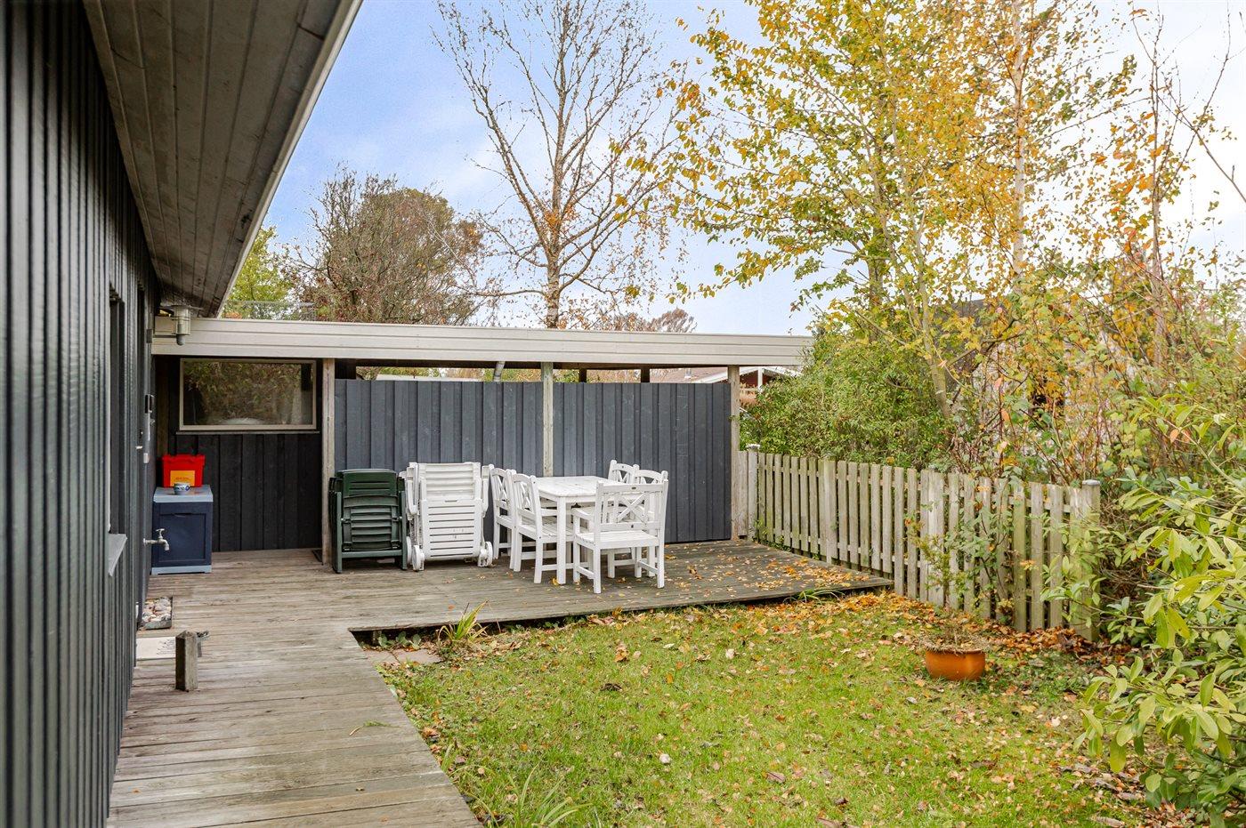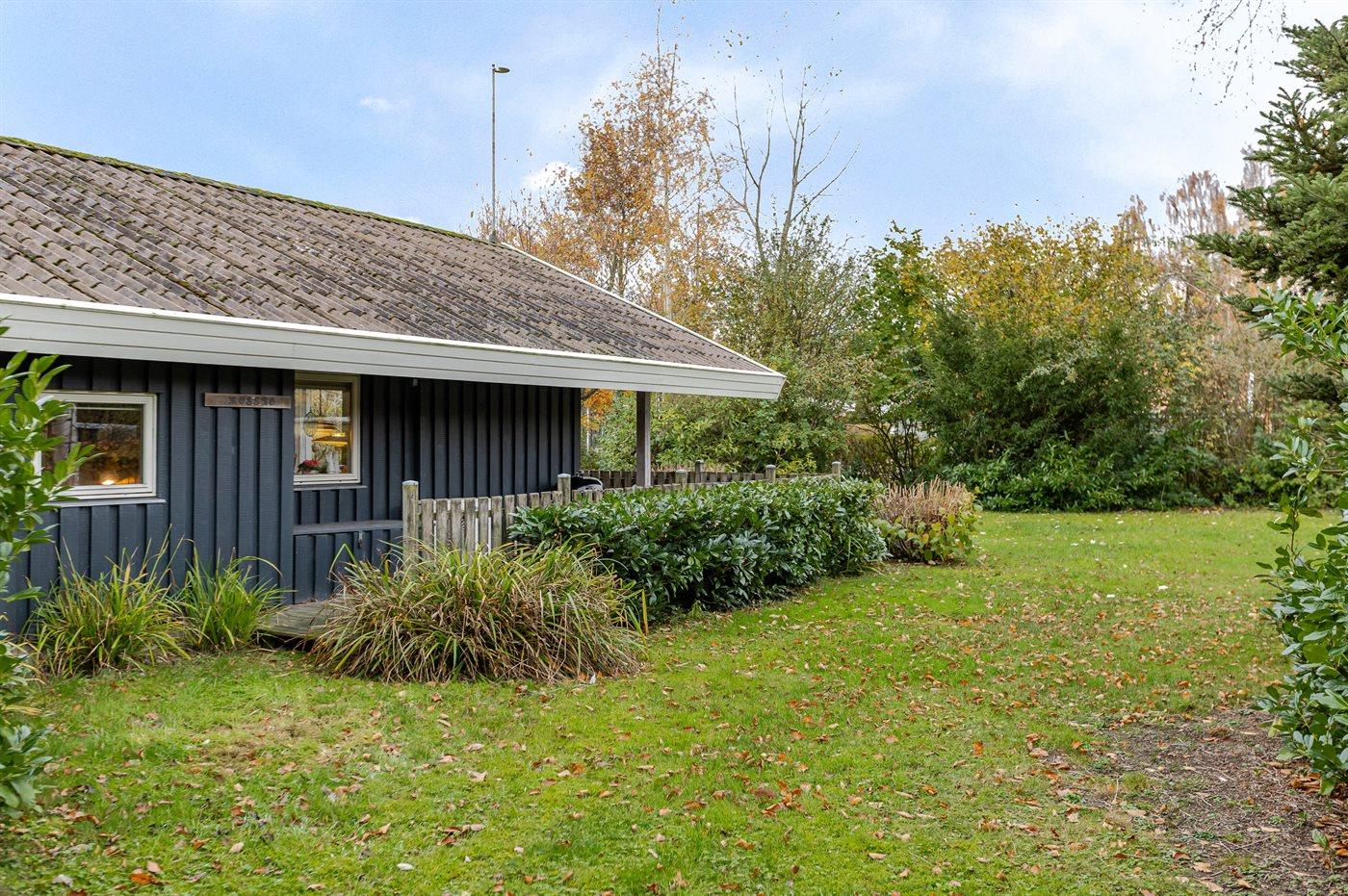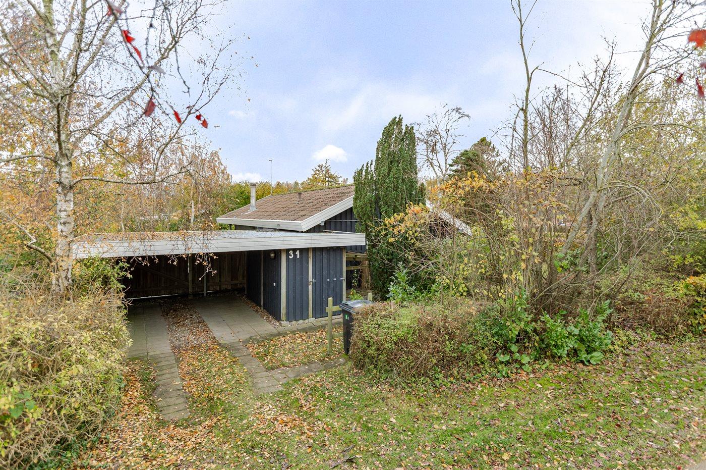 Ferieboligen er beliggende på en 917 m² stor naturgrund. Der er 300 m til havet. Desuden er der overdækket terrasse. Sandkasse. Grill til rådighed. Der er carport til rådighed. Parkering ved ferieboligen.