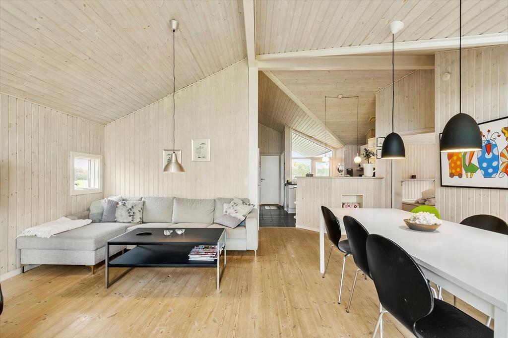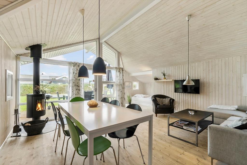 Huset indeholder lyst køkken i åben forbindelse til spise- og opholdsstue med brændeovn og udgang til terrasse, 3 gode soveværelser (to med dobbeltsenge og et med to enkeltsenge) – yderligere to sovepladser befinder sig i hyggelig alkove i stuen – badeværelse med bruseniche, spa og sauna og endelig et gæstebadeværelse med bruser. Huset er i den grad velegnet til børnefamilier, idet den store, lukkede have rummer både legestativ og nedgravet trampolin, 25 meter lang svævebane m.v. Tag en tur ud i den skønne alsiske natur: Områdets i særklasse bedste badestrand er inden for komfortabel afstand - det samme er den historiske ”Gendarmsti”.