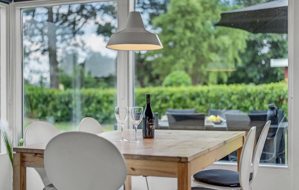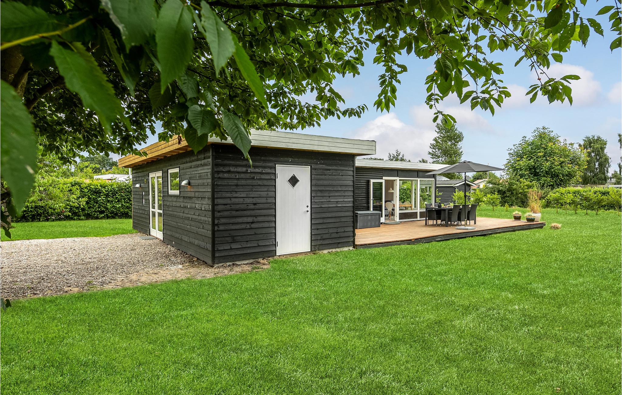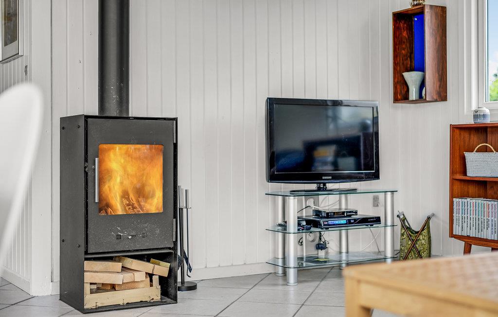 Feriehus tæt på Skovmose Strand med terrasse, brændeovn og adgang til børnevenlig strand.