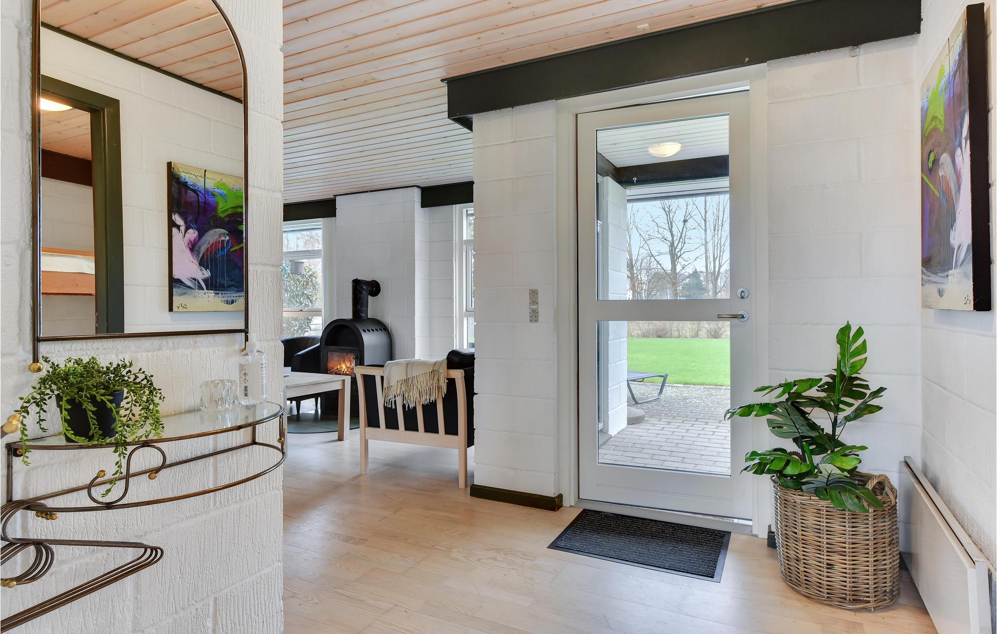 I denne hyggelige feriebolig vil I helt sikkert føle jer hjemme med det samme. Indretningen overbeviser med sin enkelhed og varme. Her vender man gerne tilbage efter lange dage og strandture for at slænge sig i sofaen foran pejsen. Mens jeres børn og husdyr leger i haven, kan I slappe af på terrassen og nyde solen på en af liggestolene foran huset. Læg hverdagens stress bag jer, og nyd roen på denne ø. Et strejf af luksus venter jer i det skønne badeværelse med spabad.