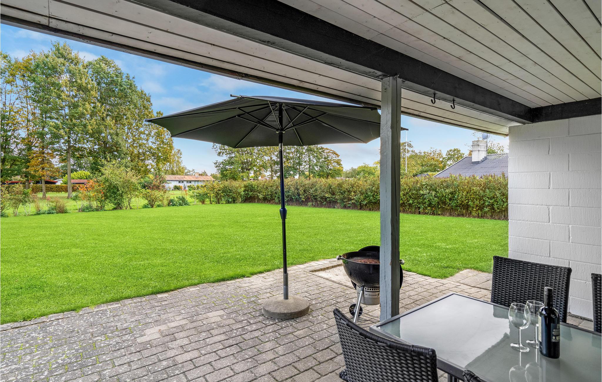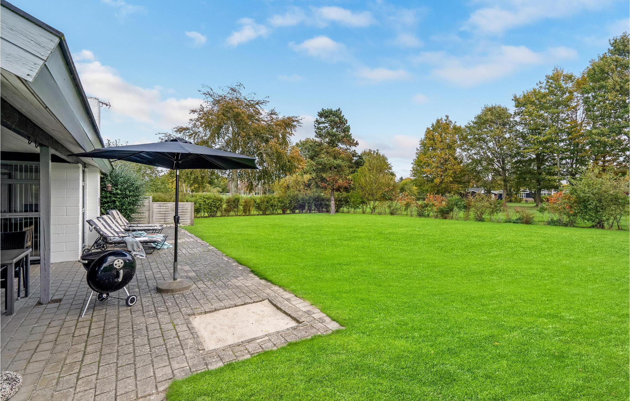 Hyggeligt og rummeligt feriehus i Skovmose tæt på stranden med spabad og stor have.