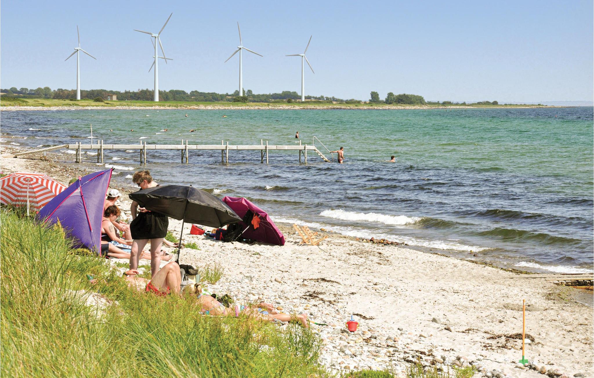 Charmerende feriehus ved børnevenlig sandstrand i Skovmose med spabad, sauna og havudsigt.