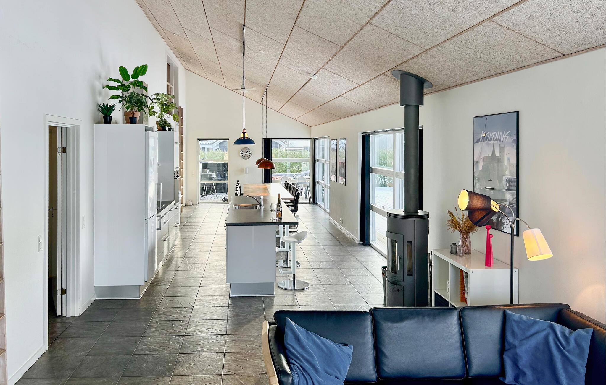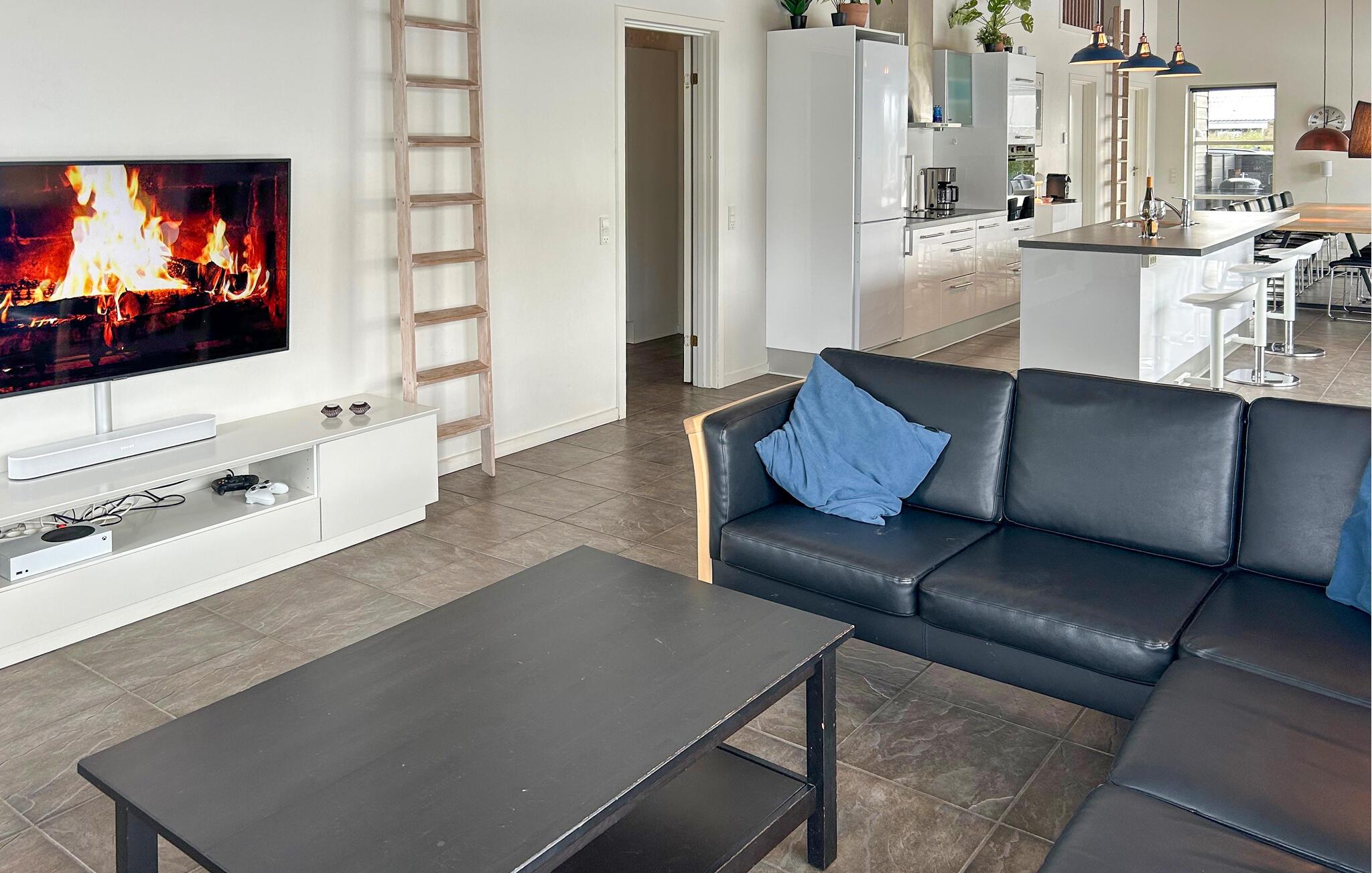 Dette dejlige sommerhus er beliggende i det rolige område ved Skovmose Strand. Østersøens klare og rene vand samt den familievenlige strand ligger i gåafstand fra sommerhuset. Det veludstyrede køkken ligger i åben forbindelse med spiseafdelingen og opholdsstuen. Her er der en dejlig brændeovn, som I kan benytte på kølige dage og aftener. Huset har to badeværelser, hvor af det ene har en sauna og et spabad. Her kan I få masseret jeres muskler af det boblende vand efter dagens aktiviteter. Huset har også et aktivitetsrum, hvor I kan afprøve jeres færdigheder i pool. Over alt i huset kan I benytte den trådløse internetforbindelse. På den store grund er der masser af plads til leg og boldspil for både små og store gæster.