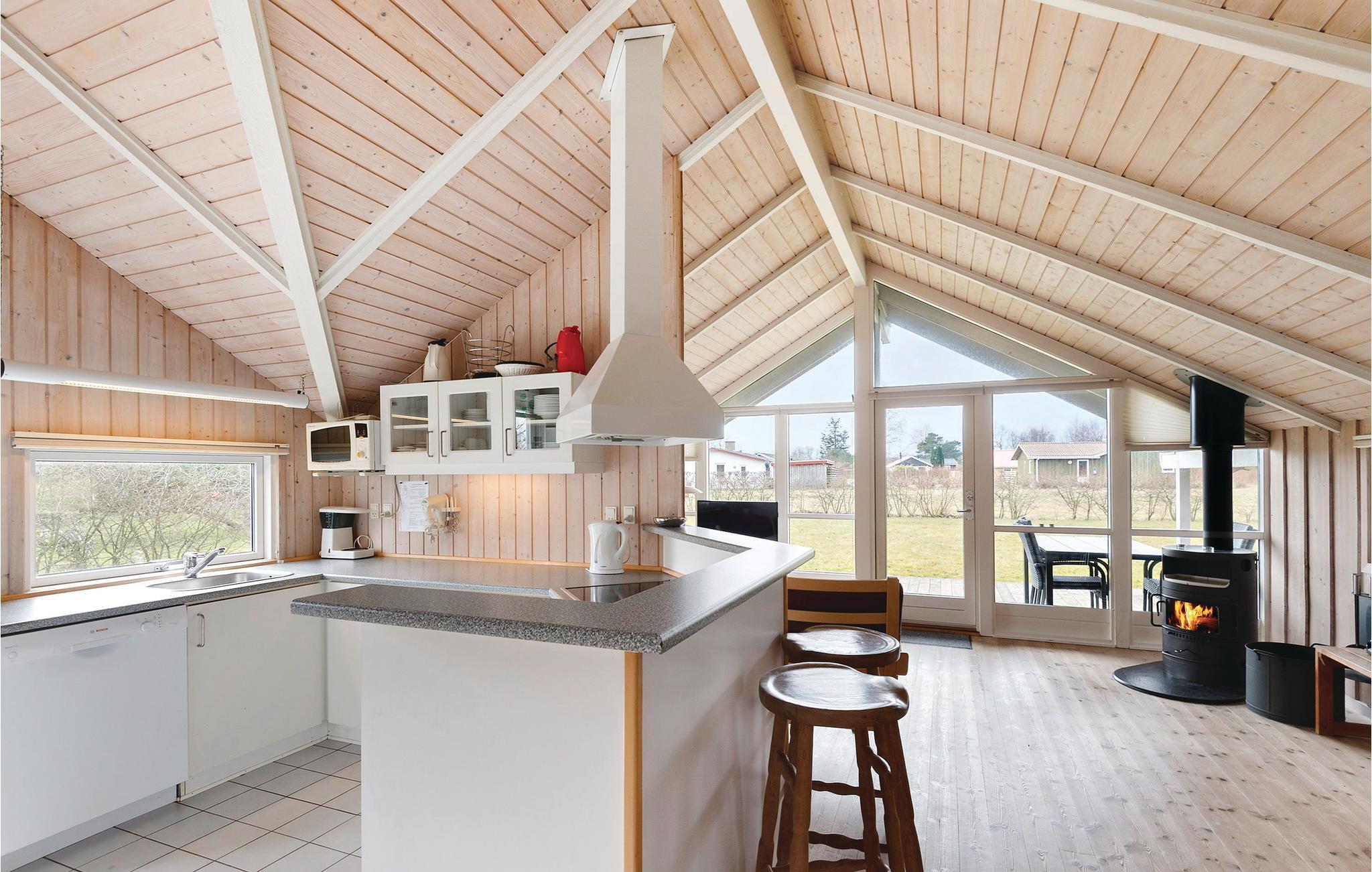 Dette dejlige feriehus er beliggende i det familievenlige område ved Skovmose Strand. Der er kun kort afstand til stranden og Østersøen rene badevand. Husets veludstyrede køkken ligger i åben forbindelse med spiseafdelingen og opholdsstuen. I stuen er der både en brændeovn og en energivenlig varmepumpe, som I kan bruge på de kølige dage og aftener. Over alt i huset kan I bruge den trådløse internetforbindelse. Huset har hele tre soveværelse samt en alkove. Der er to badeværelser. Det ene tilbyder både sauna og spabad.