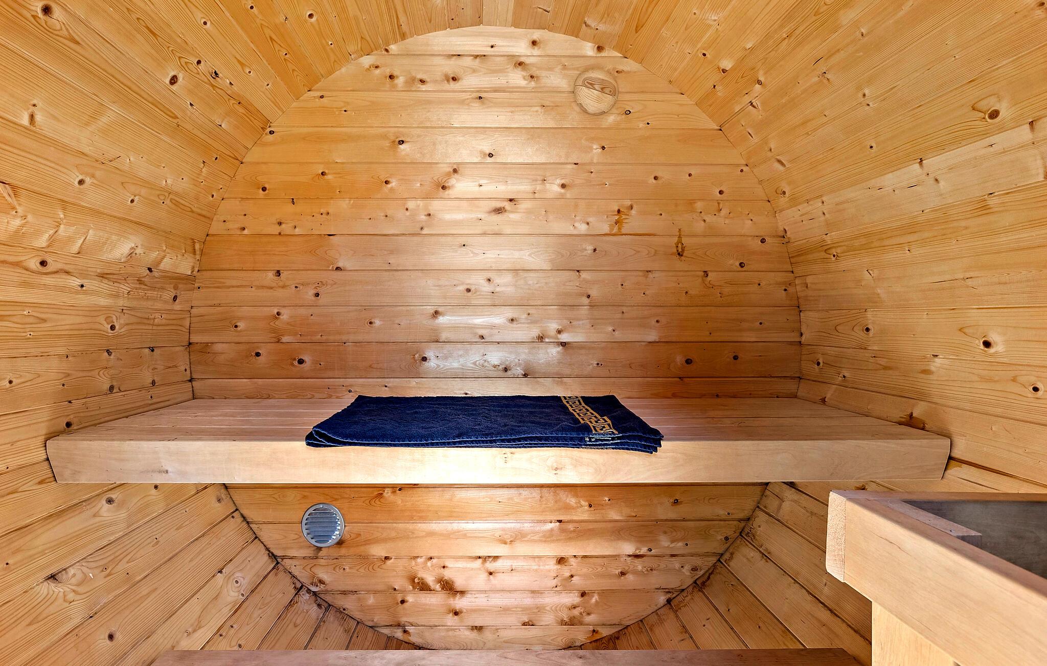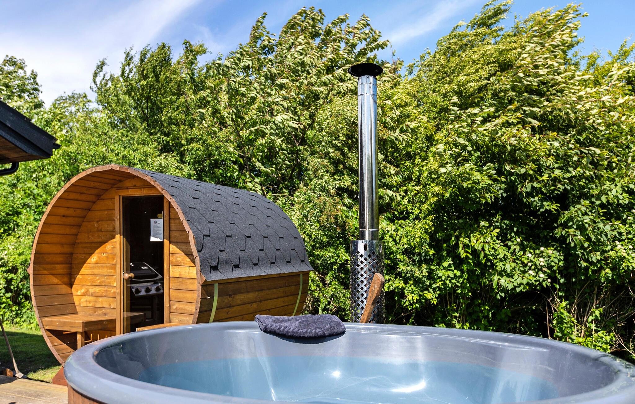 Hyggeligt træhus med vildmarksbad og sauna øst for Sønderborg ikke langt fra vandet.